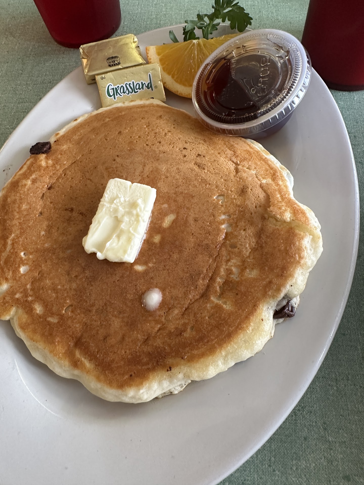Went with my family to eat here. Sat outside as it was nice outside that day. The chocolate chip pancake was delicious. Crispy and fresh taste. Wasn't too happy it was $5 dollars for one pancake itself. Been to several spots nearby that do more pancakes for that price. Ordered 2 scrambled eggs with cheese.($5) The cheese was just place on top of the scrambled eggs, and they were overcooked. The smothered homefries came out to $26 with the add on of scrambled eggs and their homemade hash. The hash was very good. The plate had alot of flavor and I was happy with that. We also ordered their berries and cream sweet bread ($16) 2 OJ ($6) and 1 Iced coffee for ($4.75). Total was $67.36