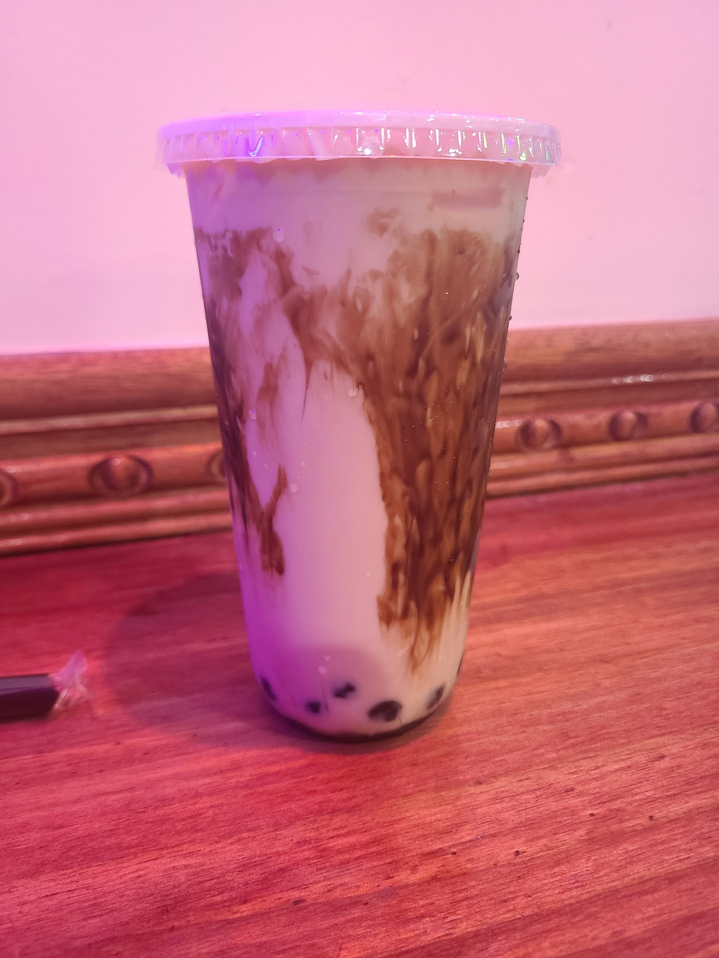 I got a brown sugar bobba milk tea. It was great. No complaints. We dined in, and the woman brought us all of our food. She was very considerate and polite.
