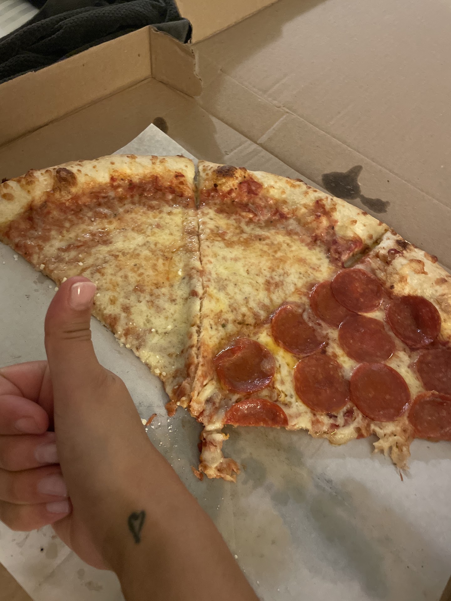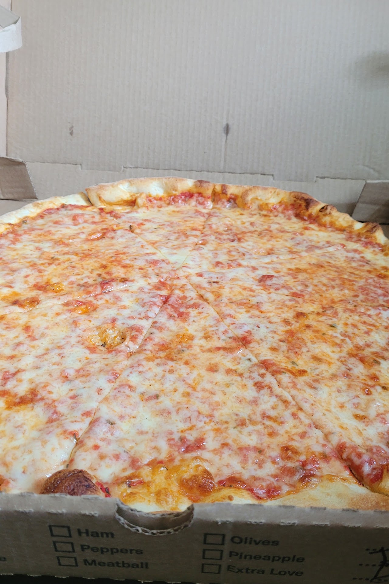 Starting with their namesake, the pizza. Very large and very flat, a slice of pepperoni will run you about $3 and should more than fill someone up; one of their slices is as large as some small pies you might make yourself or get somewhere else. their toppings range from basic and cheese and pepperoni to Chicken Carbonara and Hawaiian. Every time I've gone for pizza I've never been disappointed, just fold it together and enjoy. The Garlic knots are a nice addition to any slice, they typically don't cost more than $2 for about six or seven of them, and they are served with marinara as a courtesy. The marinara doesn't have the most memorable flavor, but the garlic knots hold it down on their flavorful merit.