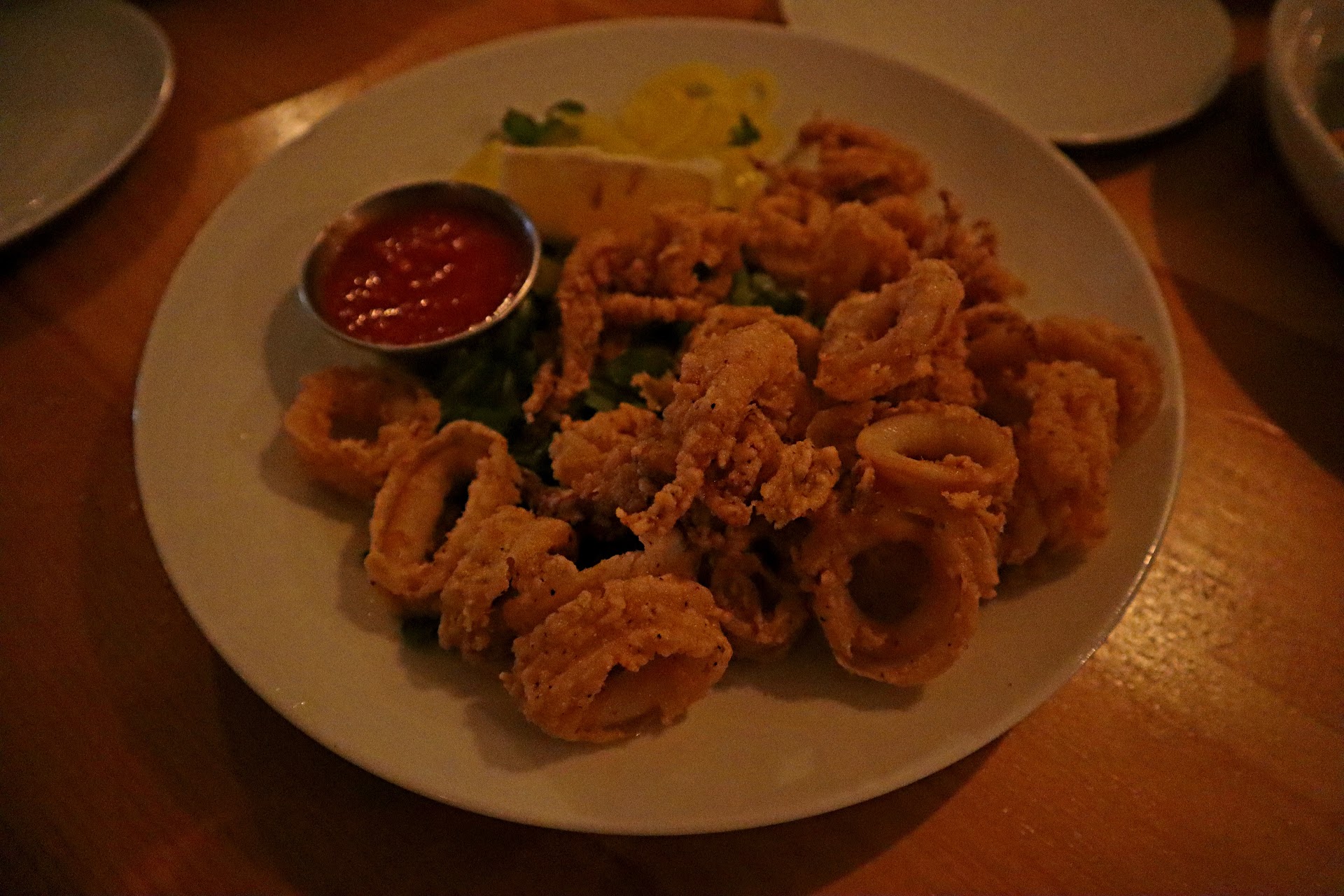 I came here with my son and his mom after visiting the Mystic Aquarium for dinner (highly recommend it). We were greeted and seated almost immediately, and we met our waitress promptly after sitting. We started off with some oysters from the raw bar and some fried calamari, along with two glasses of their Wither Hills New Zealand Sauvignon Blanc. The oysters were super fresh and absolutely delicious, and the sauces that came with them brought on an amazing flavor combination that we enjoyed. The calamari was also excellent and perfectly friend. The Sauvignon Blanc paired very well with our appetizers.
