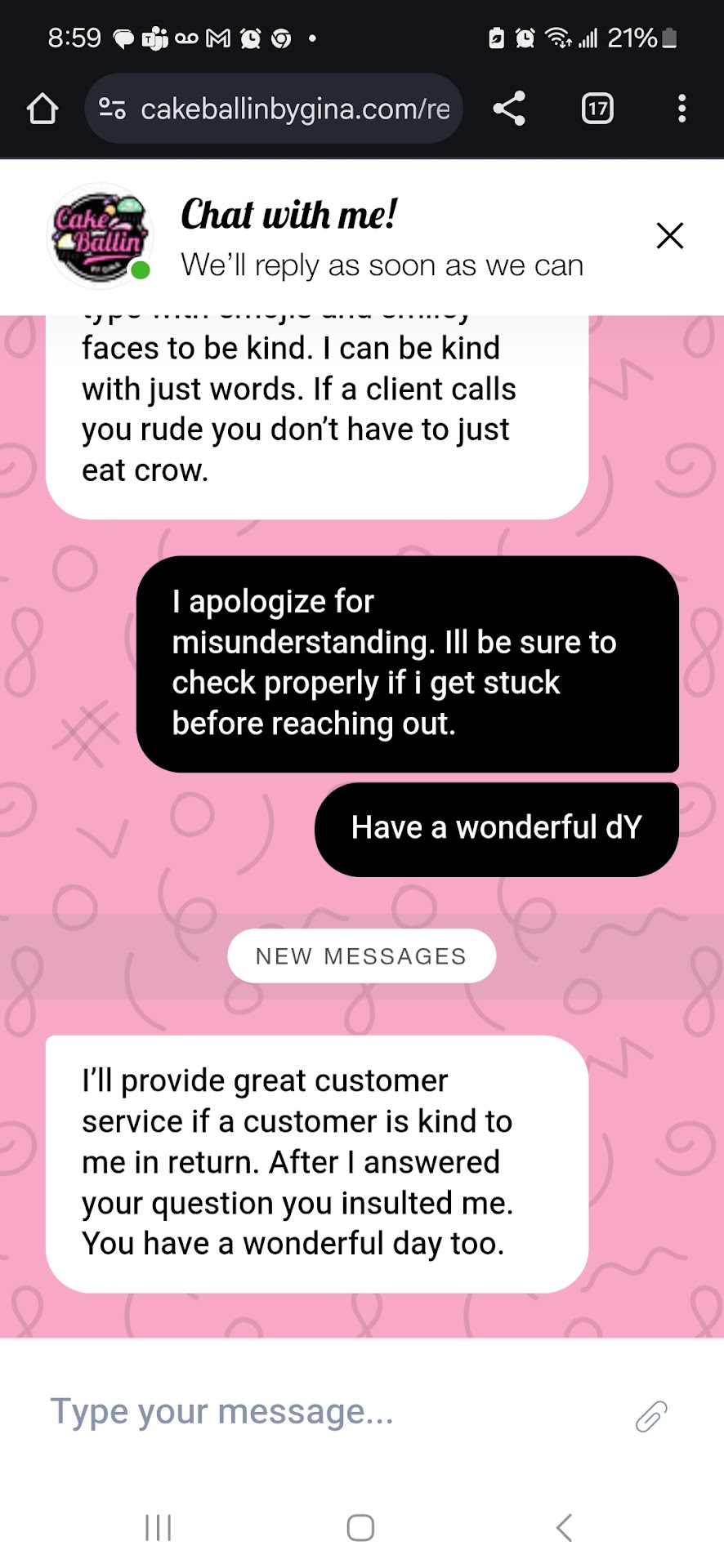 As a business professional, whether client is right or wrong. The client was needing help. If the client felt that interaction was rude. You work to resolve, not insult the customer instead. How she is in business with the way she talks to customers. Is beyond me. She lacks professionalism. Gina, do better. You may think your doing good. But you could really use some tips on communication. English might not be first language for some. Some cultures may communicate differently. Some might have visual impairment and struggle seeing things. Regardless, you should think about how you communicate with clients.