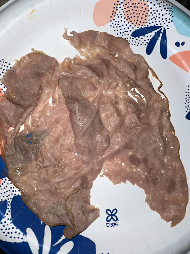 I have been a regular at this arbys for a couple months now, however tonight I had a horrible experience. I ordered 2 beef and cheddars. When she handed me my food at the drive thru window I immediately noticed a strong odor from my bag. I thought it was unusual because it’s never this strong, but I figured it’s roast beef so it must be a normal thing. However after doing some research this strong odor is a sign of spoilage, and not only the smell, but the gray discoloration, the holes, and the cramp in my stomach after taking ONE bite out of this sandwich. I called the store to complain and the manager in charge tonight was unwilling to supply me with a corporate number or a way to contact her boss, and after asking her for her name she HUNG UP ON ME. I tried warning her that she is selling spoiled beef and she acted like I was lying! This is outrageous, here is photo evidence of the GREY DISCOLORATION and HOLES from their spoiled meat that they are continuing to sell! I have also attached a photo of how their roast beef is...