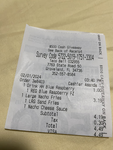 Read moreEvery time I order from this Taco Bell, I’m missing items, food is cold, straws are missing, etc. I even have ordered on DoorDash/ Uber before, and it’s still inconsistent. I unfortunately have made the decision of no longer supporting this Taco Bell due to the severity and consistency of the inconsistencies. I know missing one customer is not a big deal and they will be fine, but I have ordered Taco Bell across the states and I have never had such a bad experience as I keep having with this one specific Taco Bell. It was my main pregnancy craving ( when I was pregnant) and I love getting a Baja Blast as a little treat from time to time ( along with other items). Please re-train your employees. I’m aware of how the fast food business works and can be, however, this problem is...
