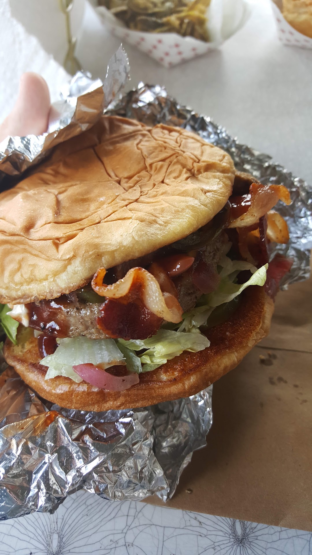 Read moreSome of these reviews are funny. Look, this isn't a place where you want to take a date, it's not air conditioned, expect to break a sweat if it's summer time. It's dirty, outside, next to refineries and a railroad. The workers are sweating, not the nicest, but the food makes up for it. It's not farm to table or anything. It's basically a dive bar without the bar. A hole in the wall joint with good burgers and what not. Get a sneaky burger .. enough said. Cut the ladies some slack and and just...