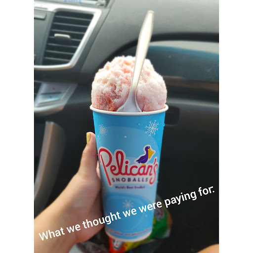Went to pelicans tonight for a treat and had one of the worst experiences i have ever had there! Me and my sister went and ordered two regulars to go and my sister was cut off mid order by the worker! After paying and moving to stand at the next window a family pulled into to the parking lot and i overheard the worker saying to her coworker that it was a whole family and they closed in five minutes. the way she said it was rude and when me and my sister pulled up previously at 8:50 i noticed both workers were staring at us from the window as well! When we received our order it was to say the least very disappointing( the picture tagged). when ordering to go they are supposed to size up the cup and make it a flat top, that is not what happened tonight. we pretty much got kids! For $15 that is very disappointing. And when i returned back to the window to ask to make sure we got what we paid for she pretty much disregarded anything i was telling her and told me that is the way they do it which i know is incorrect. this is not the first time we have had a problem, about two weeks ago we went and again ordered regulars to go and that time that came in the appropriate size cup and we thought nothing of it and it was what we ordered. Much to our disappointment when we all ate about half of the snow-cone, there was no flavor and the whole bottom was just regular ice. Both time we have had the same girl...