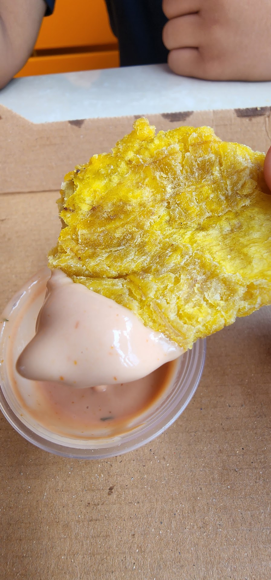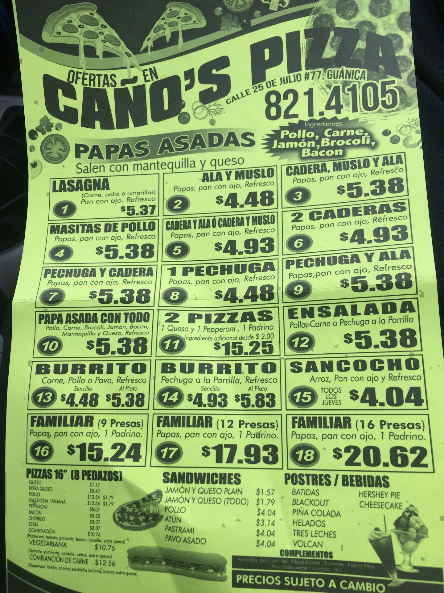 A haven in the darkness. Driving around the island, just missed Cabo Rojo lighthouse because we got there too late. Driving through small towns looking for something to eat. Kiosks closed and sky darkening around us. Drove into Guanica and met with empty streets and closed businesses. Ready to head back to the main road dejectedly when out of the darkness appears this bright, cheery, shiny business boasting tantalizing pictures of pizza, chicken and all manner of yumminess. Had option of eating in its inviting well-kept patio where we'd feast and so would the mosquitoes or the uber-Acd dining area...we went in of course. Had to throw on my windbreaker but thankful for the AC. Even bathrooms were a clean comfortable wonder. The fried chicken was so delicious, chicharron-tastiness(akin to So Cal's Shakeys) and pizza was good too and well, let me say I almost cried of joy for this respite...