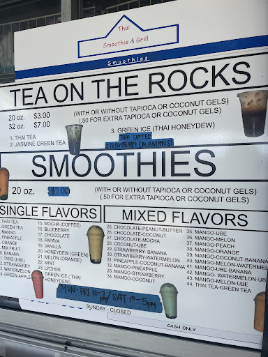 Β Β Β Read moreThai smoothie is a small spot that my kids like even though they get the same thing every time! Jasmine fried rice with double chicken or chicken and vegetables and a smoothie. That one plate alone is good enough for the both of my kids and I love it lol. Two kids fed for eleven dollars!?! YES PLEASE!!! I usually get the Jasmine fried rice with shrimp and vegetables! Itβs tasty! Iβve had it with crab as well and itβs not bad. They accept cash only They do have a number but I get ZERO luck when I call so I always have to pull up and orderβ¦ Go...