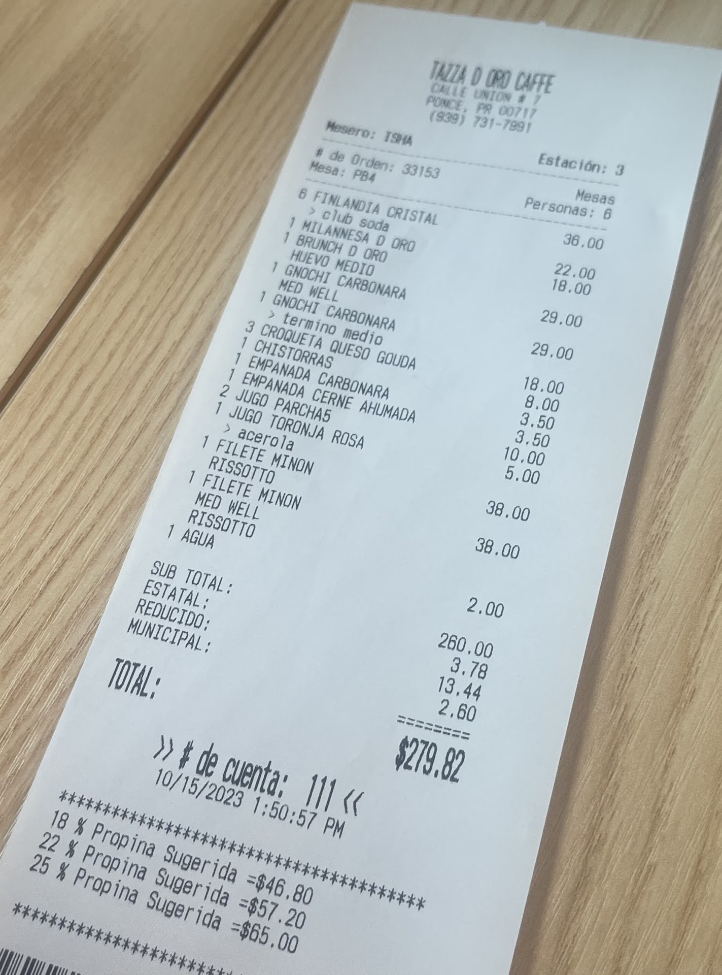 Some of our party ordered the Filet Mignon with Risotto, but the Risotto is actually ORZO pasta. When I asked the waitress as to why the menu says Risotto but they are serving Orzo she stated “We don't work with rice, therefore we don’t do Risotto. Here we do it with Orzo.” Let it be stated their menu and receipts say RISOTTO.