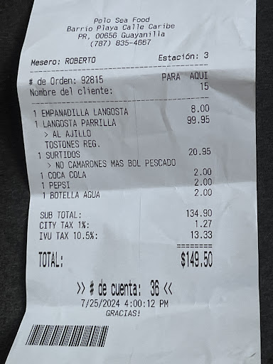 Read moreI am extremely disappointed with my last visit to this place. I WILL NEVER RETURN. I grew up in Guánica but moved to Florida over 20 years ago. I visit PR every 5 years and always visit this place until this year. They have a misleading menu. BE AWARE! I wanted to eat lobster and they have a page where they have the lobster listed for $39.95 and you will think they all cost $39.95 so I ordered lobster a la parrilla. I wish to have taken a picture of the menu which by the way is very old and needing an update. So, I find out they charge for lobsters a la parilla by the size when they bring me the check. The $39.95 price only apply to only a few lobster options. I was charged 99.95 for my plate!!! And it was not even good, I was not impressed at all. I tried to express myself with the cashier when I paid because the server was not even trying to be helpful. Nothing, absolutely nothing was done about it. She told us that they always purchase lobsters of 1 1/2 pounds or bigger meaning they will never cost $39.95 so why they don’t have this information in the menu??? They must say that lobsters on the grill minimum cost is $99.95 and up. I would have never ordered this plate if I knew it was going to cost this much. In addition to the waste of money, my daughter asked for empanadillas de jueyes, they didn’t have any. My mom asked for the surtido from the appetizers menu, they didn’t have the shrimps that was part of the surtido and the server offered to replace the shrimps with cheese. What??? Cheese is not a replacement for seafood. The table was not clean. My lobster was prepared al ajillo and they didn’t even bring butter with it. The server disappeared until the end so I couldn’t asked for the butter. It was a total dissatisfaction and disappointment. I wish zero stars was an option. I ate a lot better during the rest of my days in PR for a lot less. I will...
