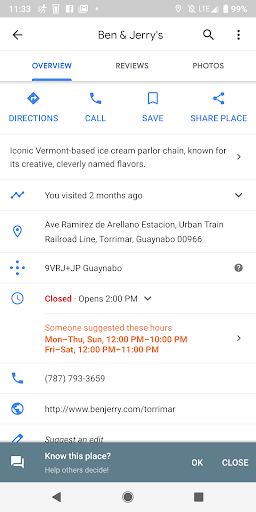 Read moreI mean, It's Ben & Jerry's. The ice cream is very good. And the location has parking on the other side of the street. It's pretty accessible and you can sit around the area which is good. Very tranquill spot to just relax, eat an ice cream and talk with friends and/or family. Only thing I could say was a little bit of a down is that some flavors weren't available. But still great...