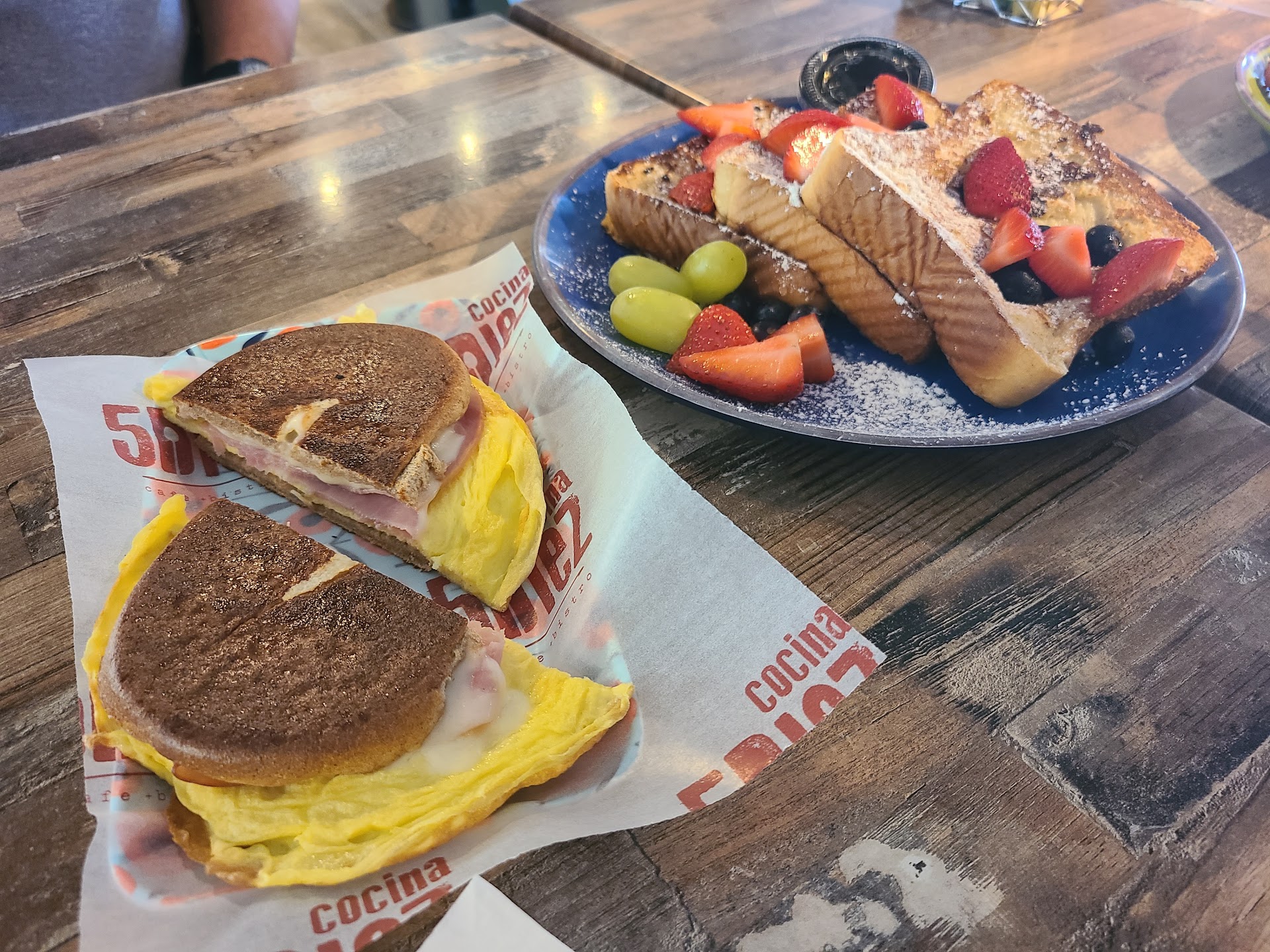 Read moreThe service at Cocina 5Diez was excellent. I also appreciate the decent prices on everything in a world that gouges. Lattes are only $3. And are delicious. I would suggest sticking with breakfast items if you go for brunch. There's a cute flair to the atmosphere here. Including unique sets of salt and pepper shakers brought to each table. I think the menu changes often, at least the daily specials. We came for the Red velvet pancakes and lobster but they weren't available. Will have to...