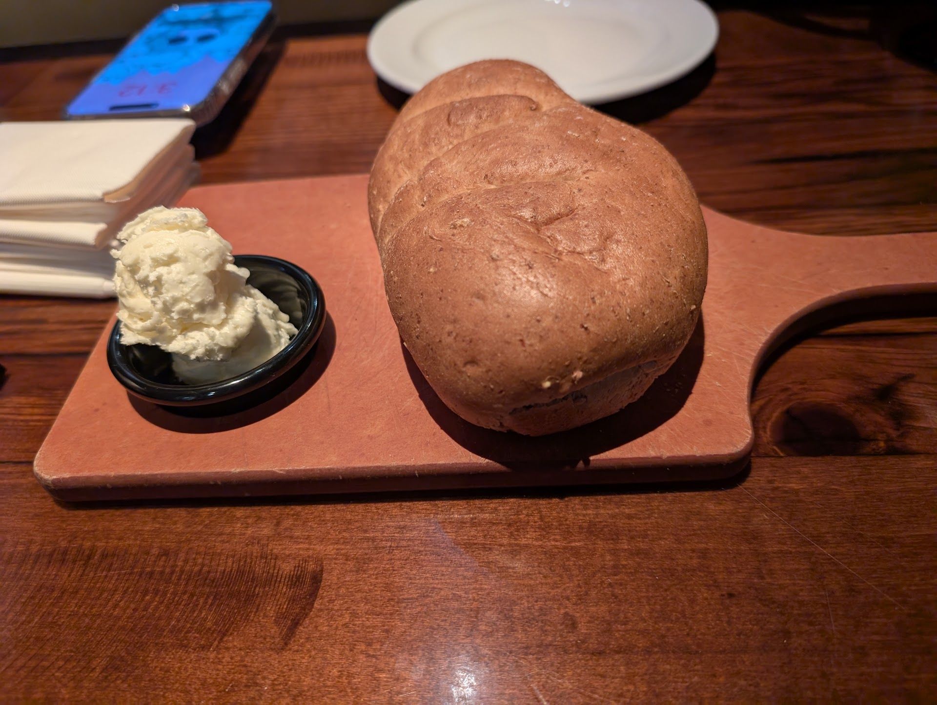 The complimentary bread? Let’s talk about it. They give you this warm, fluffy loaf with whipped butter, and honestly, I’d go there just for that. Bread game = strong.