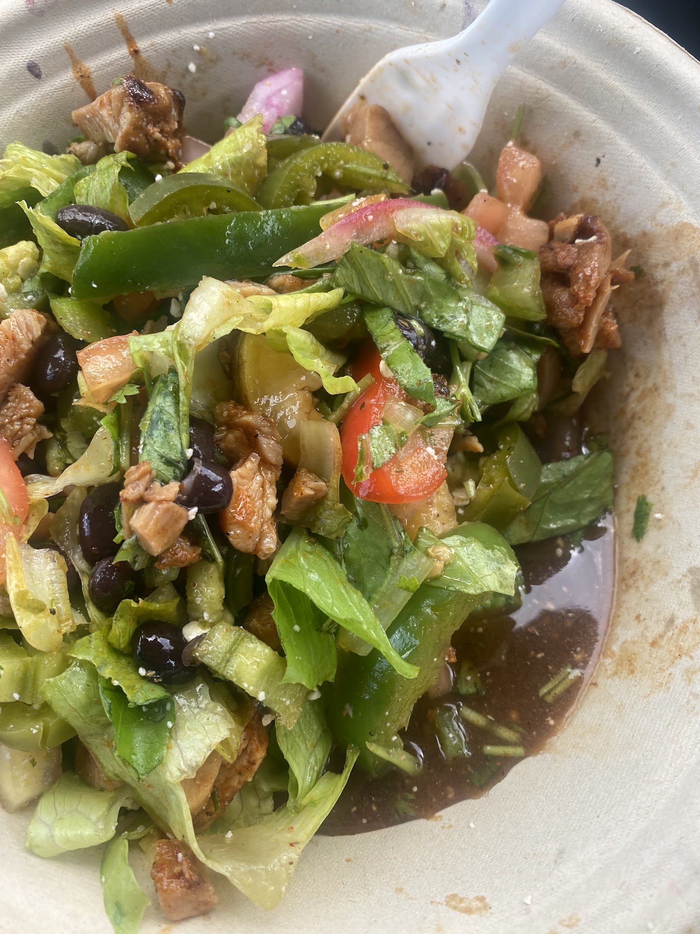 Read moreI placed a salad order to pick up. The parking is limited as the restaurant gets pretty crowded so I had to circle the lot a couple times. My order was ready when I arrived, so that was nice. I had to ask for my drink cup which was no big deal. They forgot my salad dressing. The salad was sitting in a pool of chicken juice which made the whole thing soggy. The “fajita grilled vegetables” were completely raw peppers and onions. I asked for light corn salsa and light cheese and they took that way too literal. There was maybe 2 pieces of corn and a tiny dusting of cheese. I’d hate to see the regular portions. And half the chips were extremely stale. There are definitely some kinks to work out and I hope they get them fixed. QDOBA is a great option...