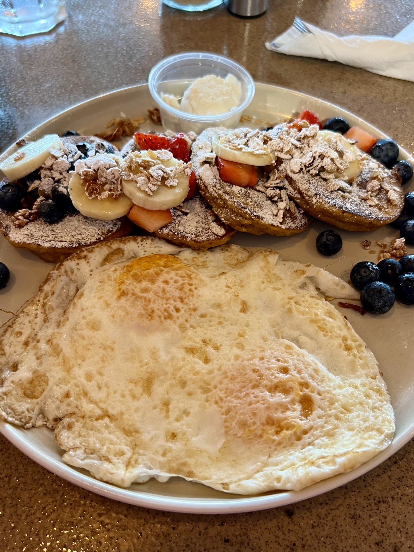 When it came to the food, however, my experience was less satisfying. I opted for the coco pumpkin pancakes, which arrived with an enticing presentation. Unfortunately, the taste did not quite match the visual appeal. While the flavors were pleasant, they lacked the depth and warmth that I had anticipated. It’s a dish with potential, but it fell short of my expectations. Next time, I’ll be exploring other options on the menu.
