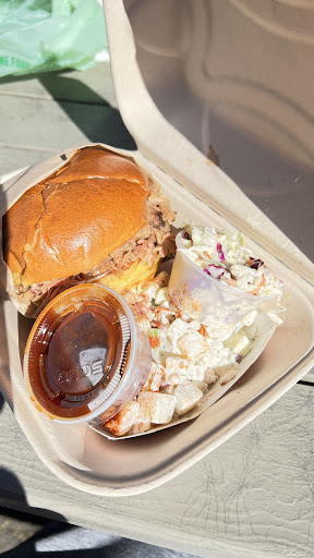 Read moreRead great 4.8 reviews of this place and decided to try. I'd give it 3.2 at best. Ordered ribs - the pork was tasty, nicely cooked and charred. But he ruins it by dumping a quart of barbecue sauce on top, making them drippy, messy and downed in wetness. Yuk! Ordered coleslaw as my side. What an awful liquid mayo mess! Again, way too much saucy mayo. You almost need a spoon to eat this. Finally, and I know this is a little thing, but his refrigerator isn't cooling so my soft drink is hot. Who enjoys a warm Coke? You work in a tiny trailer every day and you know when your refrigerator is not working. Get a new one or bring some ice, don't hand me a warm drink and just say, "it's not very cold." Back off the heavy sauces and let the meat...