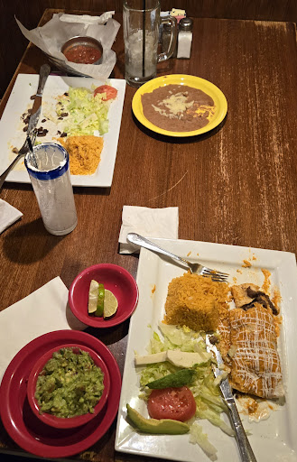 My partner and I got the Burritos Azteca (one with cheese sauce, and the other with chipotle sauce as my partner doesn't like chipotle or mole), and ordered guac and refried beans on the side. The steak inside the burritos tasted bland and unseasoned, the chipotle sauce felt as if it was burnt, and it didn't feel spicy, which again, not everyone is a fan of so it gets a pass but I was expecting a bit of a kick at least. The rice tasted as if it was boxed Spanish rice with no seasoning and the refried beans tasted as if they were "Old El Paso" canned refried beans. The guac was my least favorite of all, there was not a hint of salt to be found anywhere and it just tasted of onion.