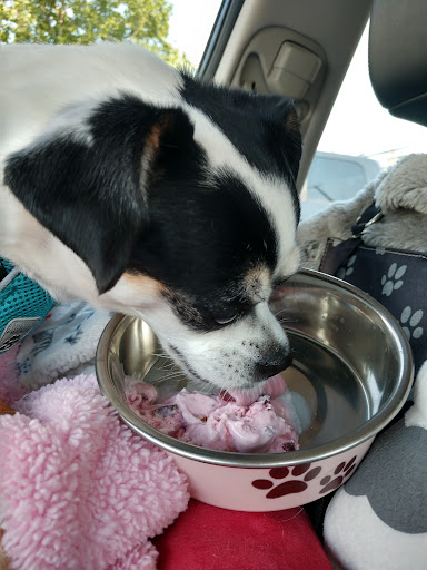7/5/2021: I was at Scoop-a-licious in Maryland a couple of days ago. I love black cherries and I ordered their black cherry ice cream. I was surprised by how big the black cherries were and there was so many, too, in my ice cream. I ended inquiring about it at Scoop-a-licious, and they told me that it was Windy Knoll's, and I have never heard of Windy Knoll, and I have eaten at over 50 creameries and ice cream places from NY to SC to TN to OH... Region. I bought 3 containers to take home, one of which has chocolate chips. I had some tonight, and there seemed to be less black cherries in the container, but it could just be my imagination. Both my dogs love it, even the one that is so finicky that she doesn't eat many brands of ice cream. I can't wait to visit this market in the near future. FYI: my dogs don't attack good like most dogs. They are very polite, and one will only eat if I feed her or out it in a bowl. That's why I was able to take pics with them helping themselves with some...