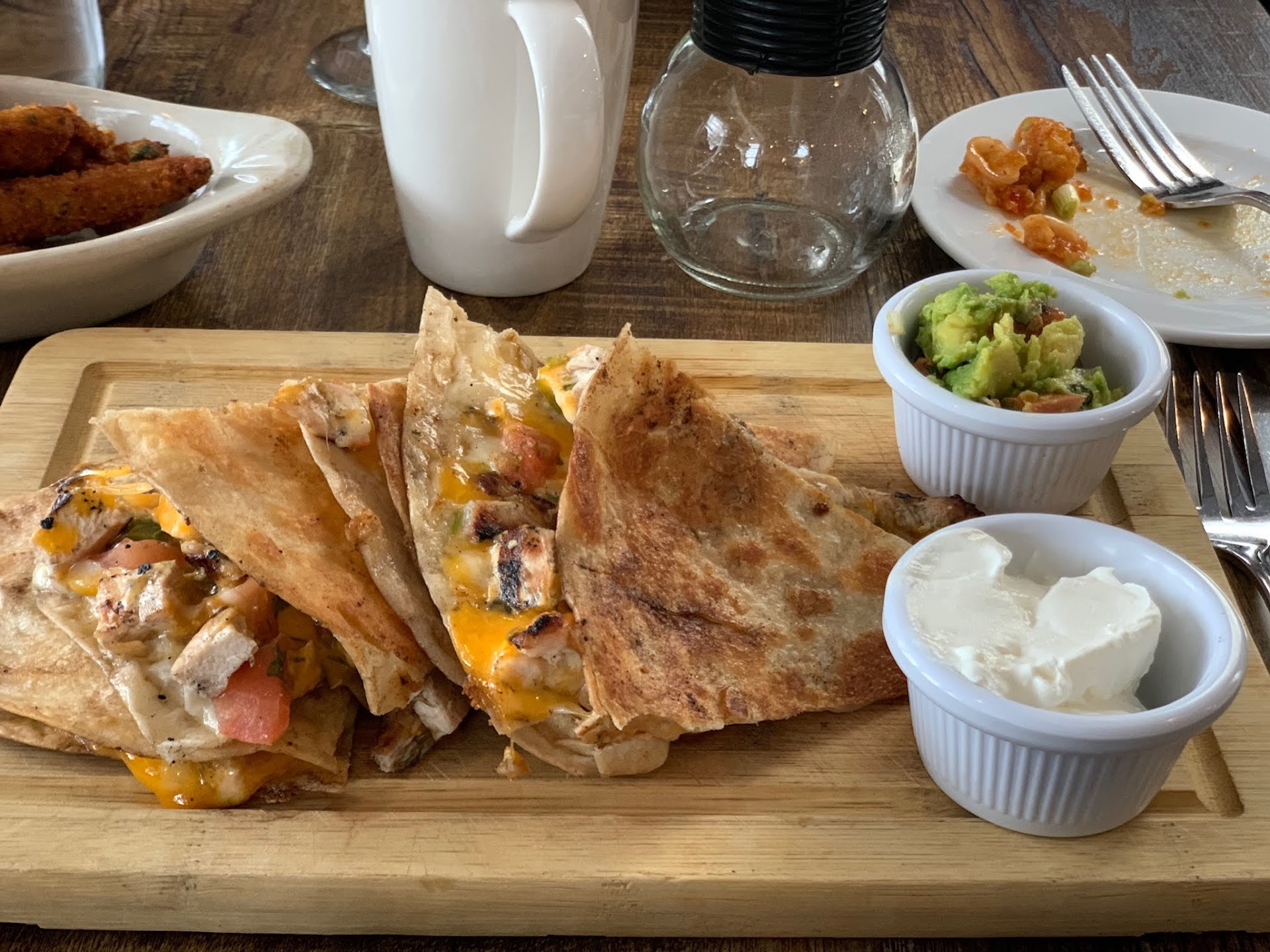 While our waitress was polite, it took 25 minutes for our first two cocktails and appetizers (which were ceviche and 2 single shrimp cocktail and did not have to be cooked). Unfortunately for us, after the appetizers arrived, we waited another 25 minutes before I got up to order our next round (waitress never returned to check in) while we waited for our two entrees.