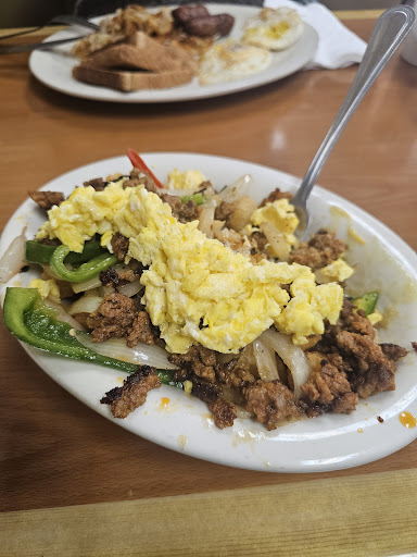 How this place hasn't yet exploded in popularity is beyond me. Went for breakfast at 11 on a Sunday and there was no wait. The food was so tasty and more than reasonably priced. Photo is of the Sloppy Farmer (Tater tots topped with peppers, onions, eggs (your way - chose scrambled), choice of bacon, chorizo, or breakfast sausage (chose chorizo), and a Mexican cheese blend. They also provided their own homemade salsa verde sauce (delicious) and a spicy sauce (I'm not a big spicy guy). Eggs over easy were good, everything was hot, and their breakfast sausage had a great crisp on skin. We're definitely returning to try lunch and dinner - but will we pick Mexican...