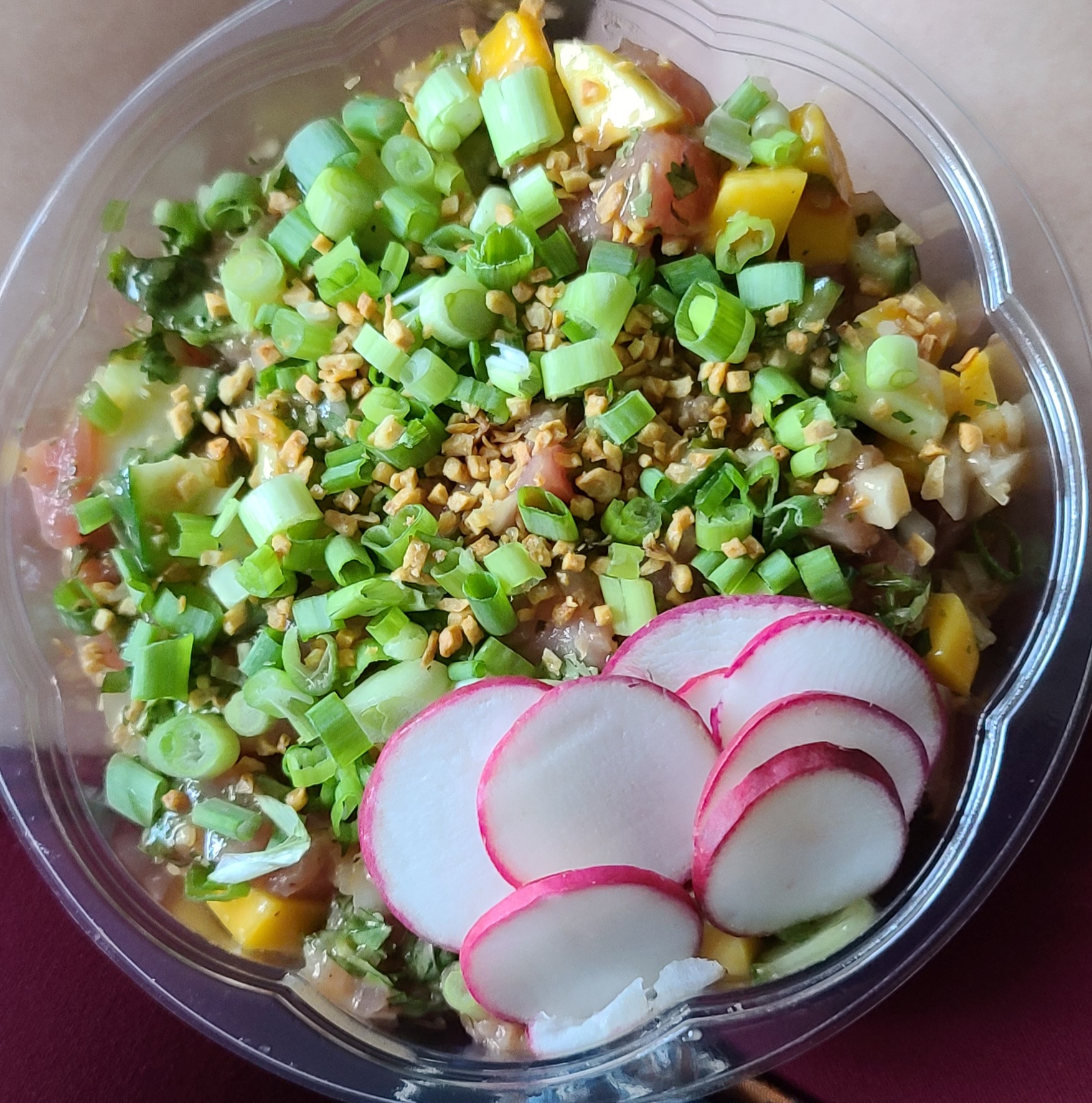 Went there with my girlfriend today and we each got a bowl, I got the soy ginger chicken and she got the signature tofu bowl. The service was great, employees were helpful and kind. Right when we walked in it smelled extremely strong of cleaning chemicals but I’ve been to places that smelled like that before right when walking In so didn’t think much of it this time. We took the food to go and went back home to eat. Neither of us could finish our food from them both tasting like the smell of chlorinated pool water. I’ve had pokemoto many times at different locations including here before and never had this happen. Kind of upsetting with each bowl being around $15. I’ll get poke somewhere else...