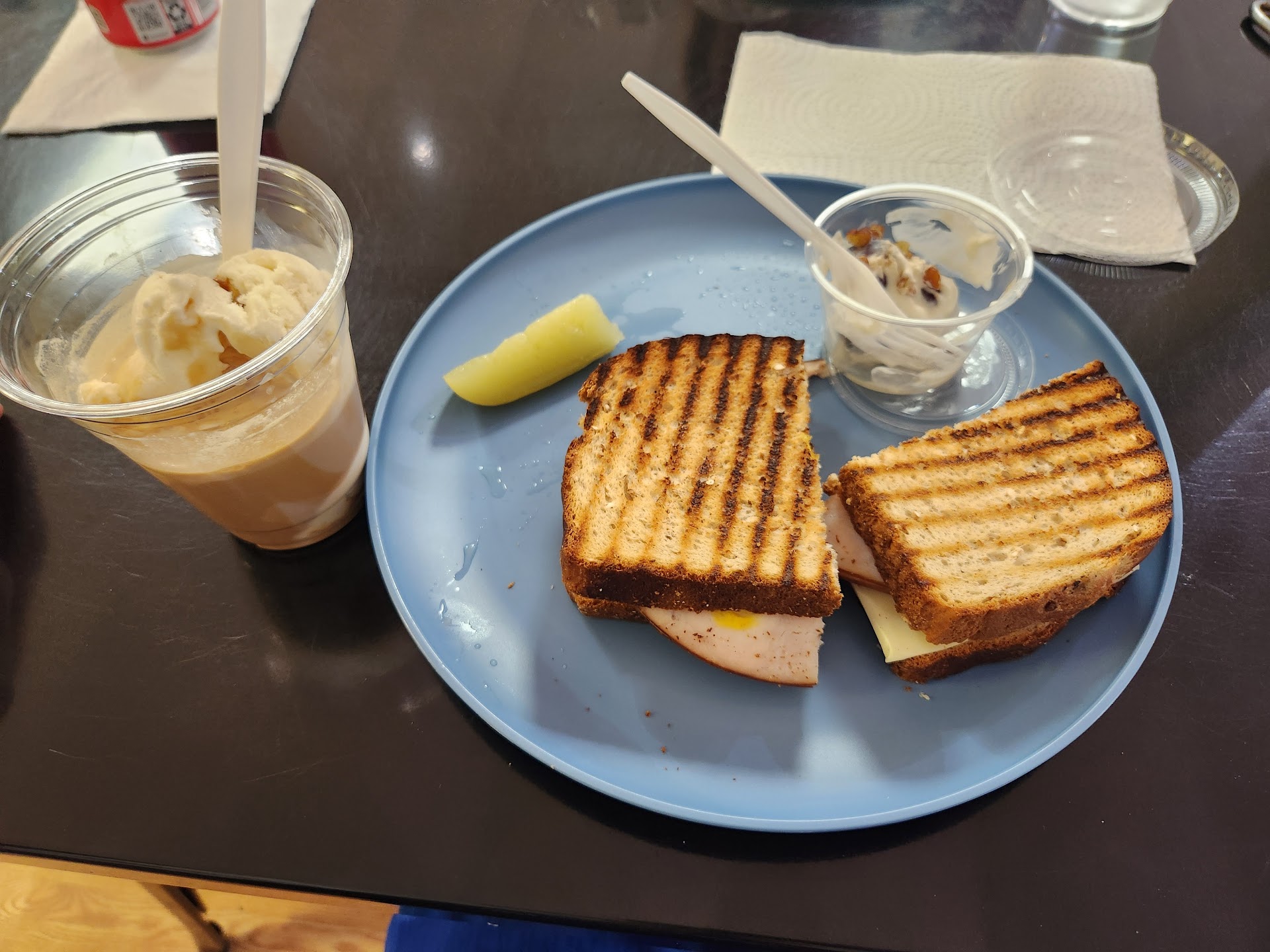 Read moreOverall, not a bad experience at all. This is a small shop that shares a building with other businesses. The staff were friendly and were prompt in getting our orders. I had a Turkey and Swiss Panini on wheat bread and it came with a pickle and a side. I had the Grape Salad, which was very good! The panini was kind of basic, but overall pretty good. I'm not sure if the make their pickles in house but it seemed to be a "fast" pickle brined in just vinegar and salt. It ended up being a little too vinegar-y for me but if you're a salt and vinegar fan it should be right up your alley! I also had an Affogato, which was pretty solid. Overall we had a good experience and would consider...