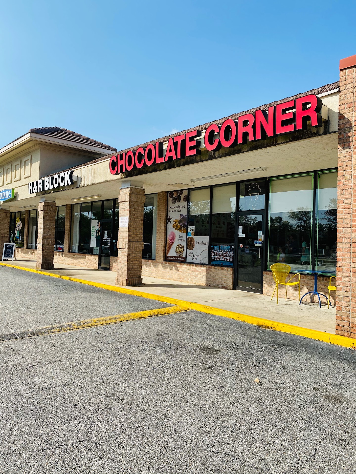 The shop is in a medium-sized shopping center with ample parking. The inside is clean and nice and brightly lit, with all sorts of confections on display.