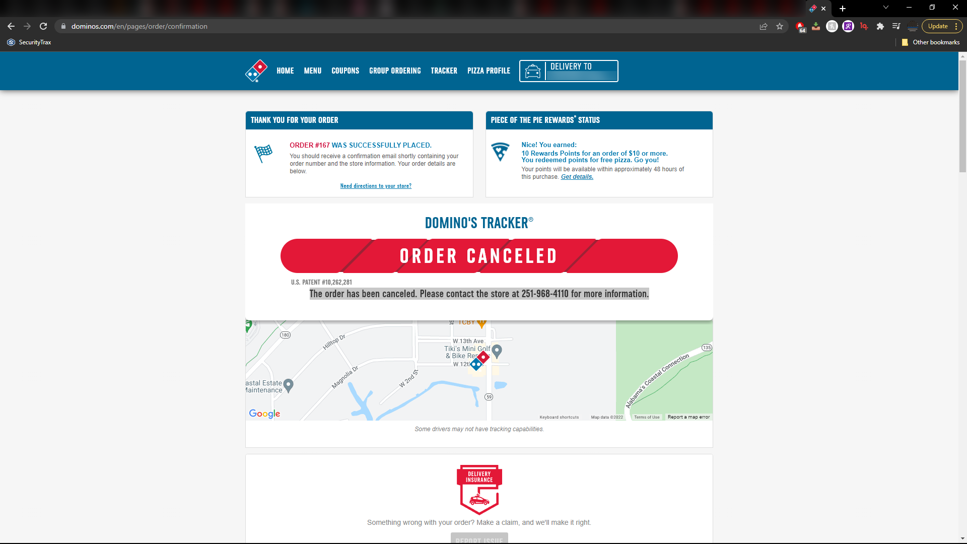 Ordered food tonight after we got to work. Order went through, used my points, charged my card... 10$ tip on top. Order canceled and says "contact store". Basically livid at this point because #1 the store never answers the phone, and #2 I'm pretty sure the ringer is just turned off. I've had problems before and they wouldn't answer the phone, so tonight is no different.