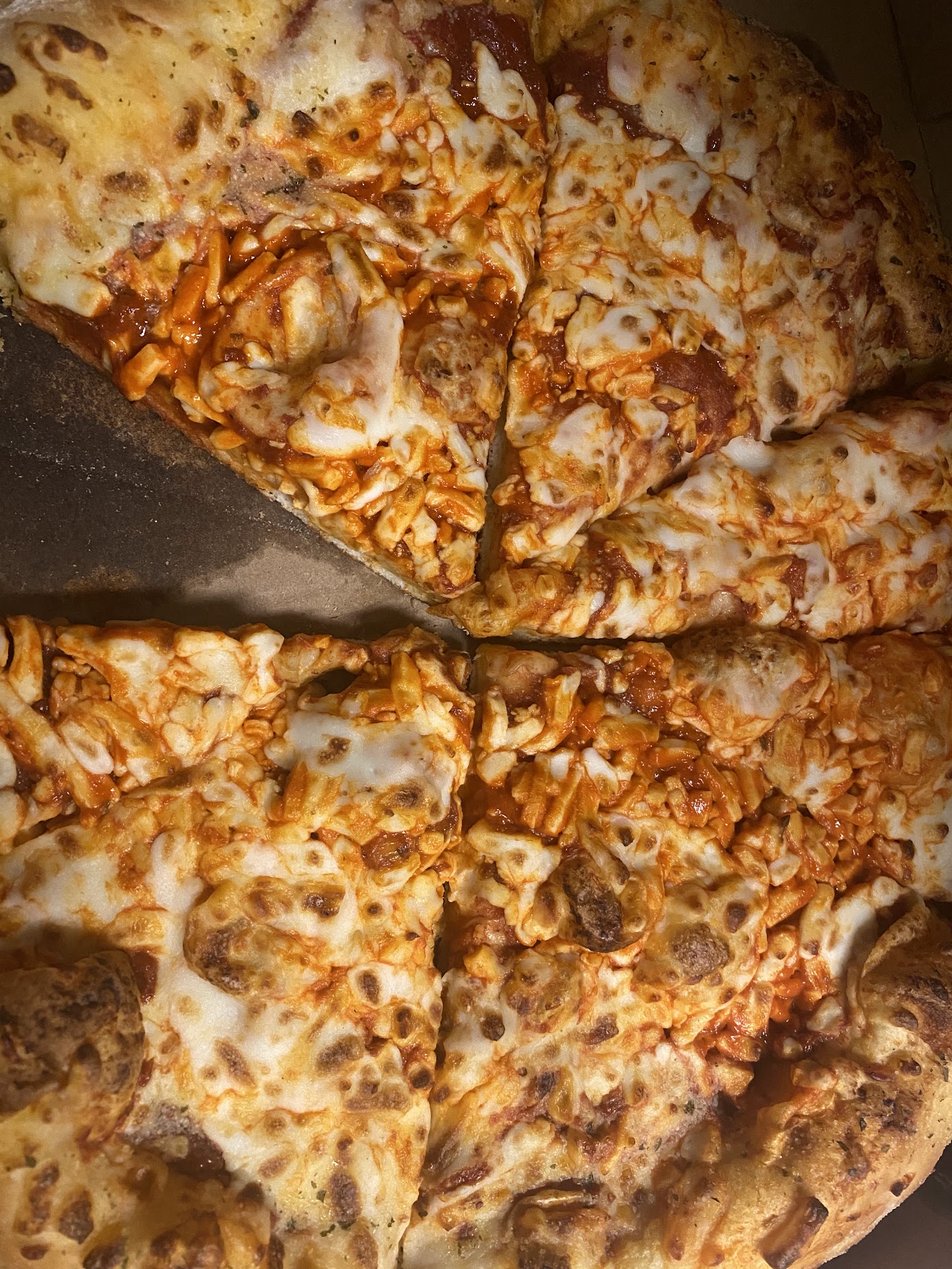 Read moreWeâve never had a problem with this store, my family usually gets a couple of pizzas and maybe an order of one of their specialty items. Everything is usually hot and fresh, except for the order we got yesterday. I never write reviews and normally donât complain about inadequate food, but this is something that needs to get fixed. We placed an order online for one pizza with two toppings and one order of the garlic bread twists- nothing complicated. The tracker online was going through the normal steps: everything was good on time until the step that said they were checking our order. It took 20 minutes for them to finish cooking the food, then it said they were checking it for at least 35 minutes, then they delivered it and it took another 40 minutes. We wouldnât be as upset if the food was good. The pizza wasnât even hot, and the bread twists were actually cold and hard (probably from just being old). We could tell the food has been sitting there becoming old before the delivery. We put the pizza in my oven in order to make it edible- ORDERING FOOD FOR DELIVERY WAS THE WHOLE POINT OF US NOT COOKING FOOD. Very unsatisfied- the delivery driver was nice and let me know that he made sure all of our sauces were in there so I tipped him, but Iâm sure he knew the state of our order. The pizza delivery employees should open the pizza box at the door for guaranteed exceptional food. I wouldâve called them back if I wanted a refund, instead Iâm leaving a review for the resturaunt to not do it...