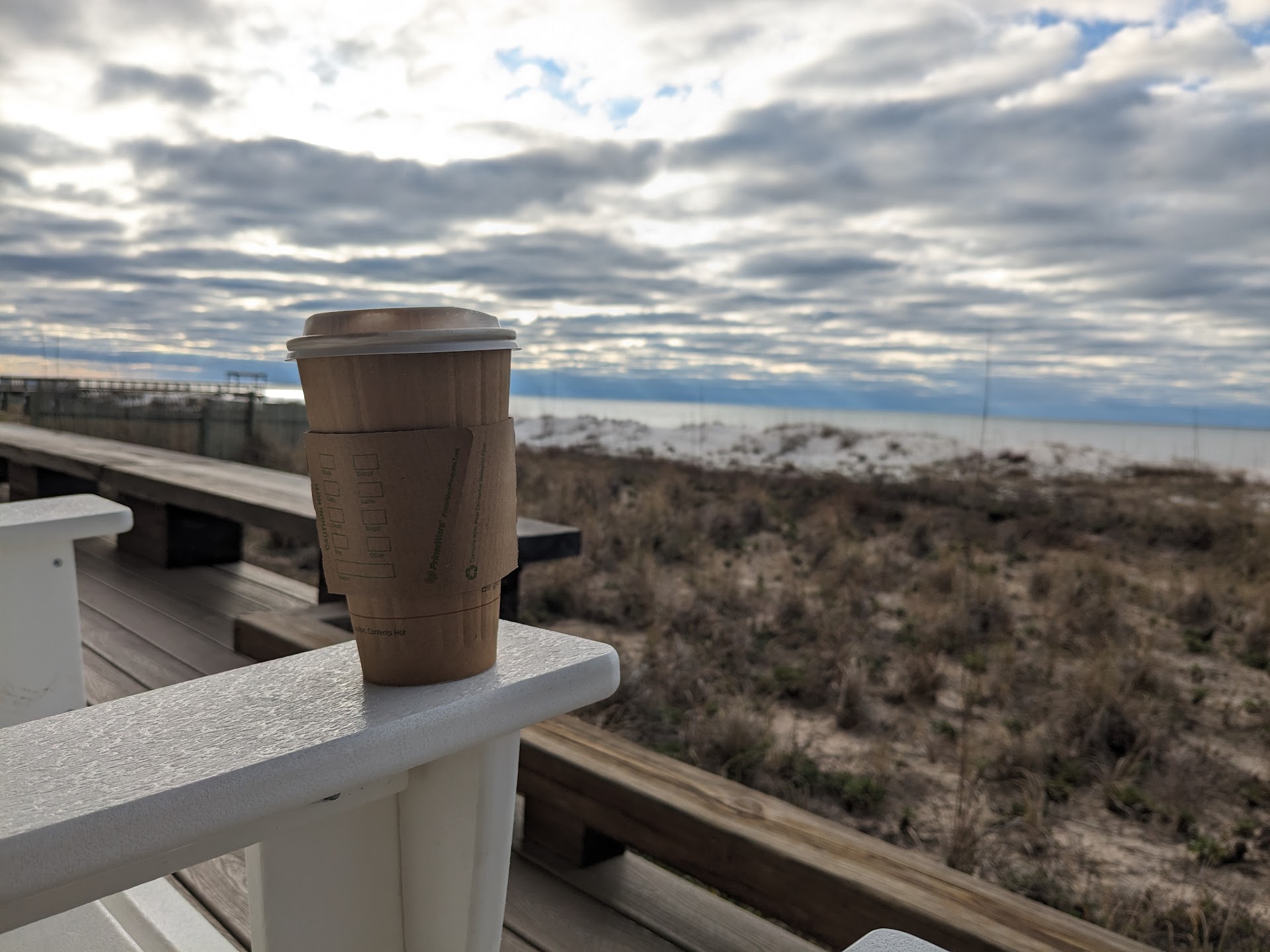 Grab a mocha and drink it while sitting in a comfortable chair watching the waves roll in and the clouds drift past.