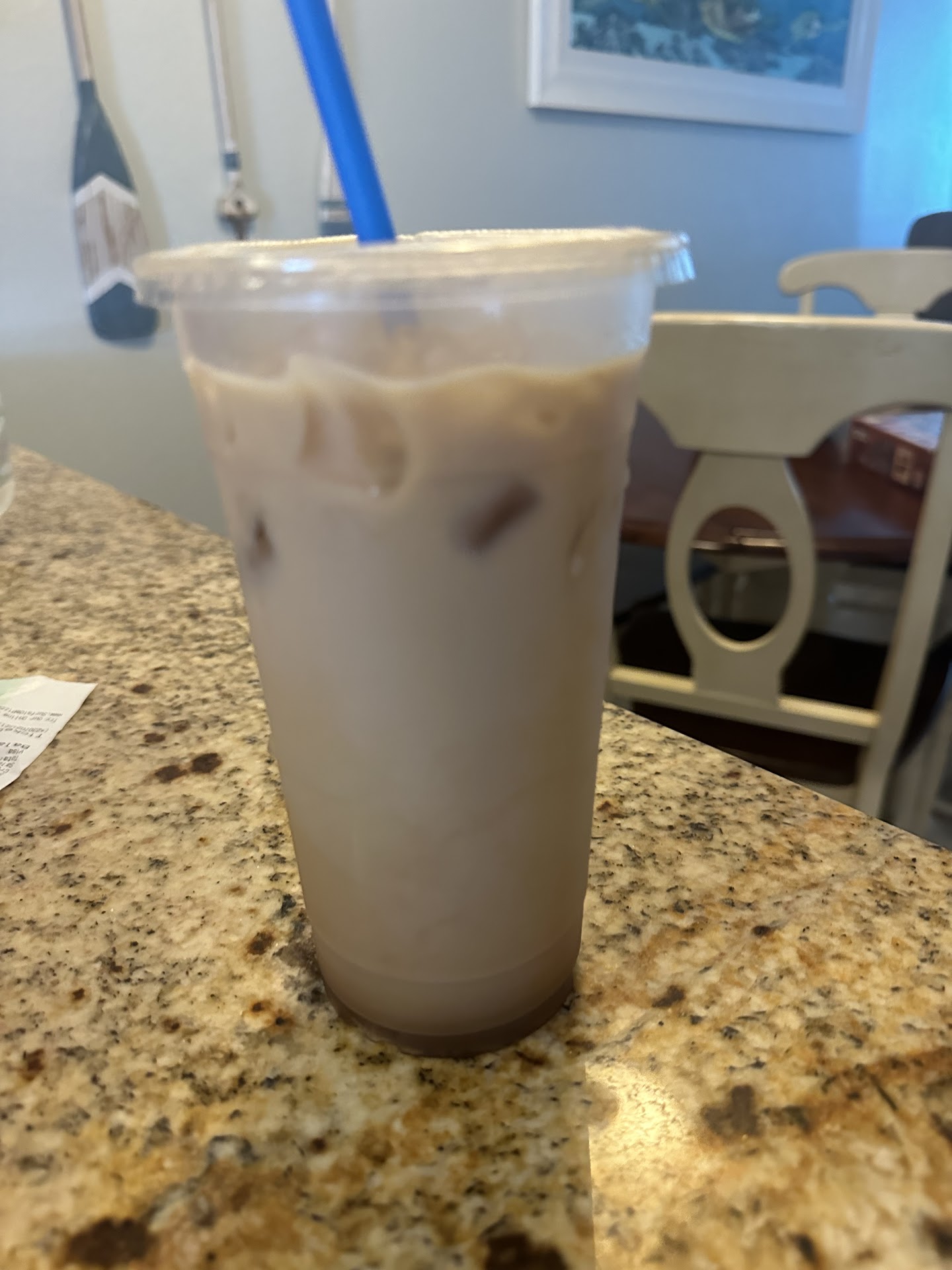 I got an iced macchiato, but it wasn’t a macchiato. It was a latte. I didn’t mind because it tasted good enough to drink, but it just wasn’t what I ordered. I didn’t bother having my order corrected because there was only one girl working and the line was long. My husband ordered a frappe and was satisfied with his. However, flavor options for the frappes are limited to caramel, mocha and vanilla.