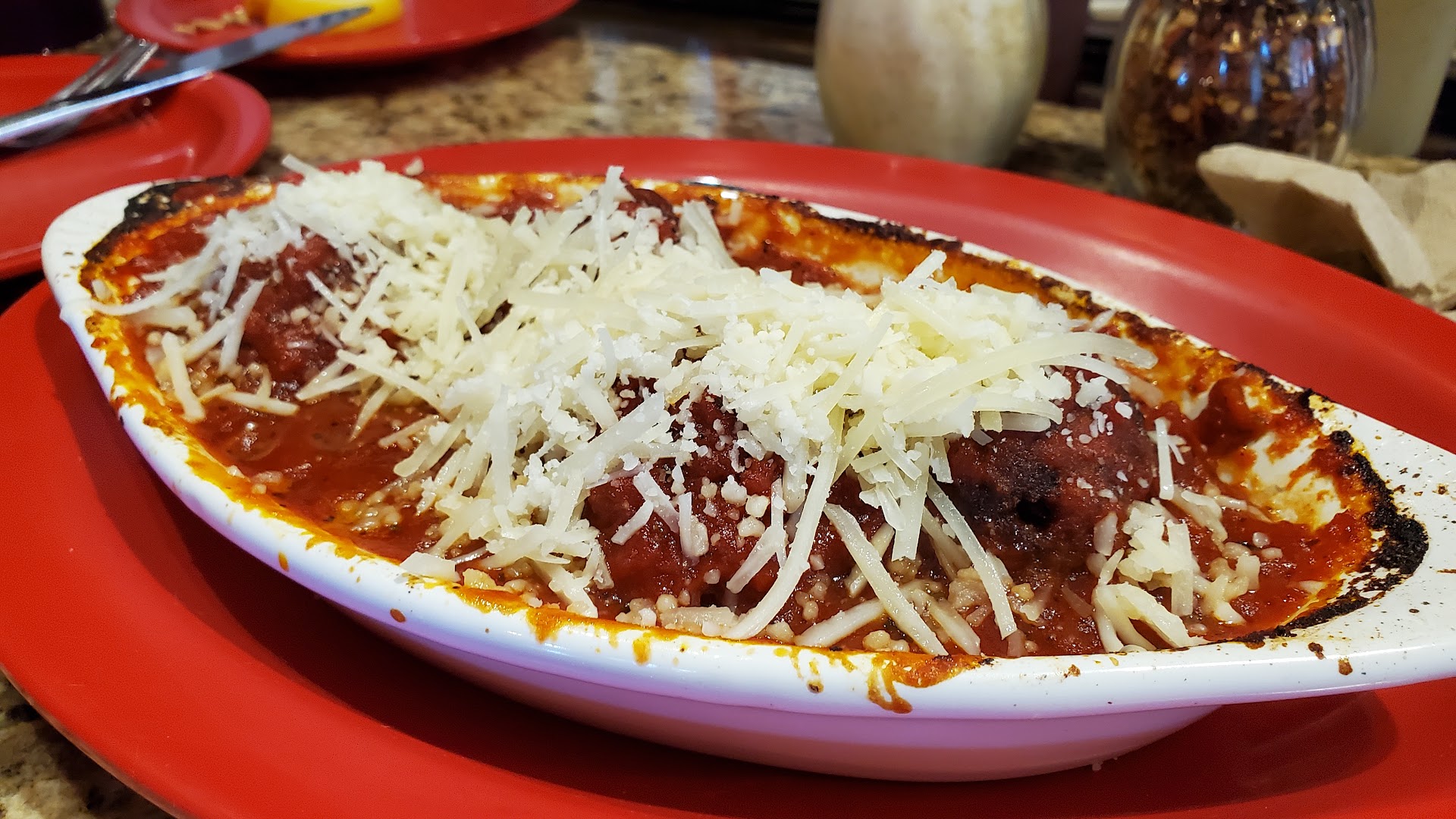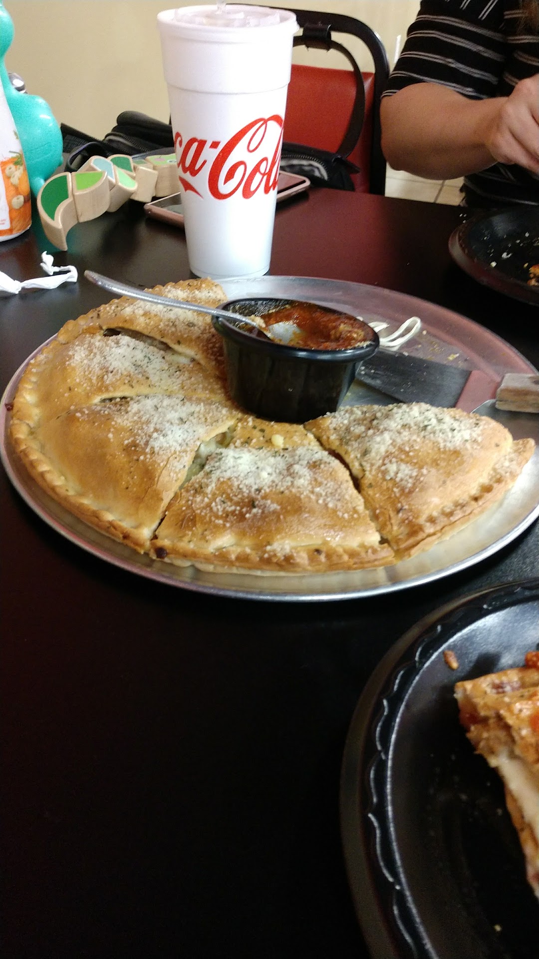 Our standard order is the calzone with the garlic knots for appetizers. I was pleasantly surprised by the calzone. At most chains, the calzones are overly hot on the inside and almost impossible to eat for the first 5-10 minutes. These calzones are crispy on the outside and just the right temperature on the inside. Best of all, they serve the marina sauce in a cup in the middle so you can decide if and how much sauce you want. I highly recommend the calzone.