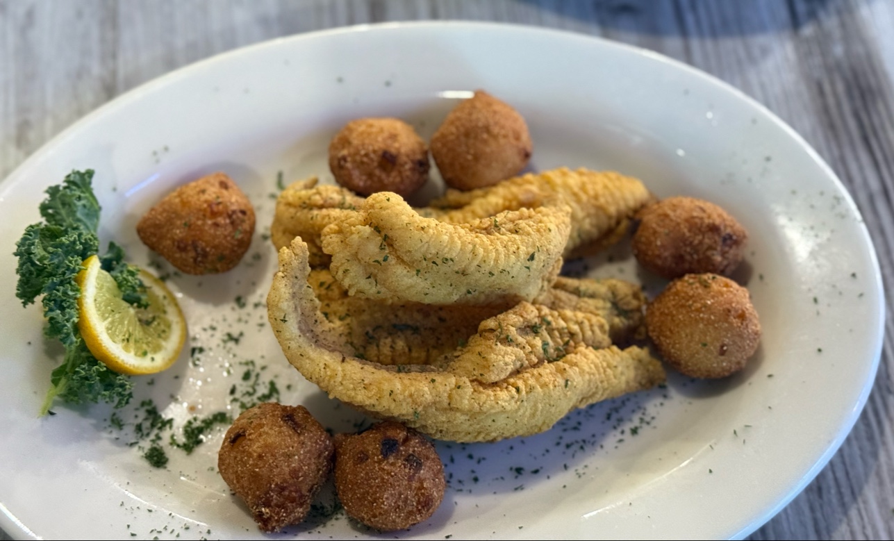 FOOD APPETIZER Onion strings - The order was enough for probably 6, there were only 2 of us 😃. They were thin & crispy and the crust stayed on the onion. DRINKS Mermaid Margarita - Delicious and fun with coconut on the rim. Patron Margarita - Smooth with the obvious taste of house made mix. YuM! ENTREES Soft shell crab - Husband is an afficianado and he thoroughly enjoyed it. Light batter that stayed on the crab. He also liked the crab salad that came with his meal. Honey Fire Shrimp from the app menu - Fresh shrimp, crispy batter, delicious sauce. Servings were ample. We had leftovers, but sadly couldn't take them with us since we were traveling. DESSERT Key Lime Pie - We didn't have room for it, but it went down so easy! (I've worked for a dessert manufacturing company for 25yrs. I can attest that the pie was fresh, authentic, and house made with minimal ingredients).