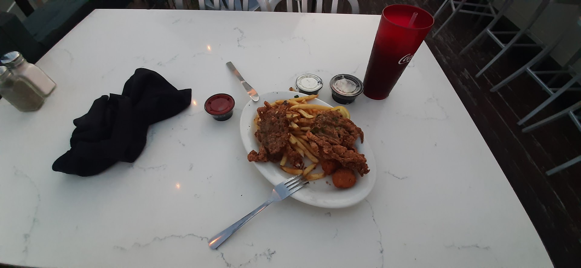 Edited to say, I looked at some of the other reviews and their pictures. Our food did NOT look like that and now I wish I had forced someone to stop so I could ask for a manager to see our plates. Our Gator bites were Literally a small basket of CRUMBS and our seafood platter had hardly any seafood, it was a...
