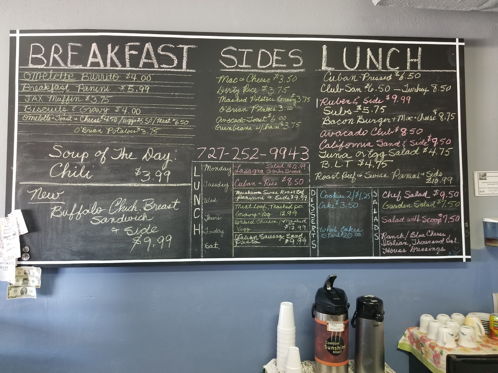 I've been jonesing for a small down home cafe like they have on small farm-town main streets. I have just stumbled upon one. Not exactly the same as you won't find any John Deere hat, bib-overall wearing, newspaper reading, Redman chewing old-timers there. But, this is the place: Jax In & Out Neighborhood Cafe at Gulfport Blvd and 49th run by a lady named Jax. You've driven by it many times. I stopped in to this unassuming, 3 table, dog-friendly, modest (at best) strip mall establishment based on the Google reviews - 4.9/5. Glad I did. After interrogating the young engaging and informative young man at the counter on the menu, I chose the Reuben over the Mushroom Swiss Roast Beef Panini (which I'll definitely go back for). It came up quickly, was high quality, delicious and filling. The creamy, real mashed potatos were just made fresh and tasted it. The salads looked large and fresh. Sweet Italian Creme Iced-Coffee on tap. Jax informs tomorrow (Saturday) is Italian Sausage day - the mildly spicy sausages cooked in marinara for 20 hours. The same sausage and marinara are used in what will prove to be a superior Lasagna special on Monday. Guess...