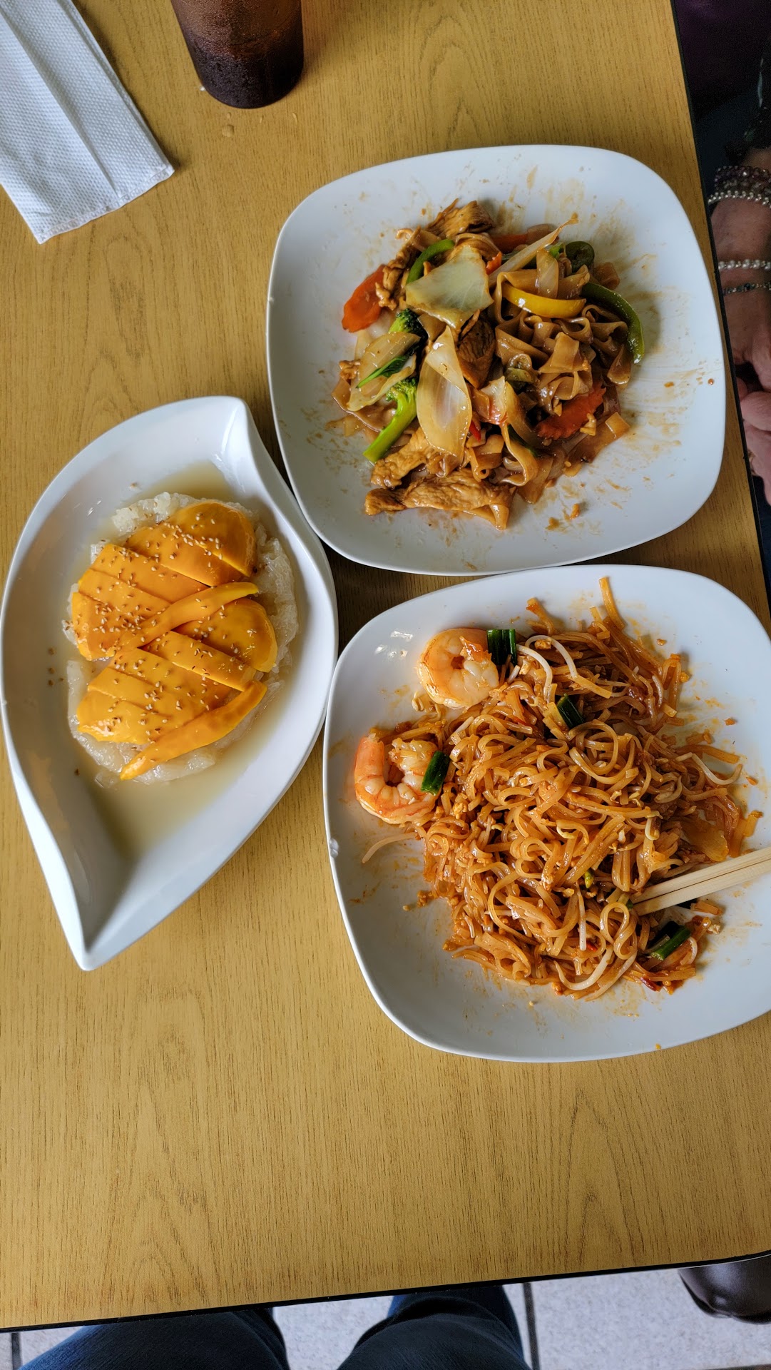 Read moreI’ll start off this review with saying I’m not a person to try new types of food, but I wanted to take a chance. From the moment we walked in, we were greeted with good and timely customer service. We ordered the Thai Fried Chicken Wings as an appetizer. They were delicious! They were perfectly seasoned, crispy, juicy, and the dipping sauce paired well with them! I ordered the Spicy Pork Tonkotsu Ramen. This was DELICIOUS! I have never tried actual ramen before, but this was exactly what I was expecting! The broth was slightly sweet, spiced perfectly, and had a deep rich flavor to it. The pork was fall apart tender. We also tried the Chicken Fried Rice which was very good. My only complaint is there wasn’t enough chicken added to it. My daughter ordered the Drunken Noodles. I will say I’ve never tried a dish like this before, but it throughly shocked us at how good it was! It was hearty, seasoned well, and had the perfect amount of noodles to vegetables. The only downside to it was there wasn’t enough chicken added to this dish either. For drinks, I ordered the Lemonade which was not tart enough to my liking, and my daughter ordered the Strawberry Fruit Tea with Popping Boba. The drink looked milky and had a medicine like taste to it, unfortunately. We were able to get her some apple juice instead, thankfully, and I settled for water. Despite the small mishaps, the bottom line is I definitely recommend this place to try! The food is great, you get plenty of food for the prices, and the service was amazing....
