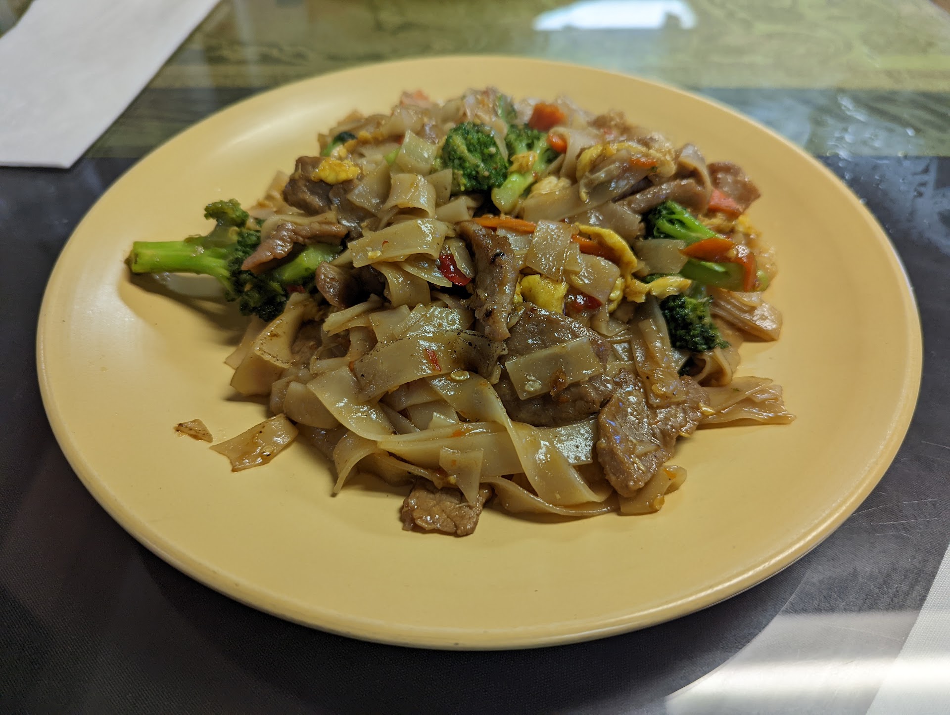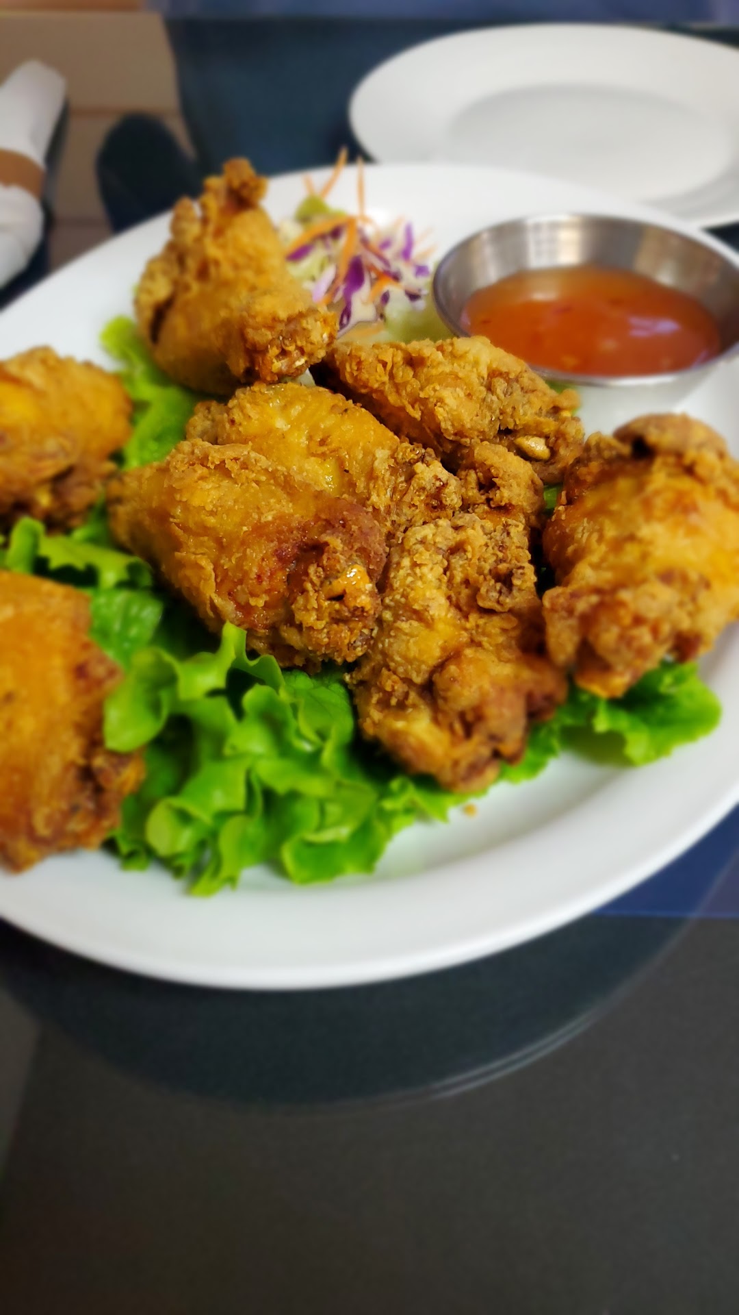 Read moreWe have been so curious about this place and finally took the time to try it out. We were not disappointed! I like what they have done to make it more appealing inside; the previous establishment was short on decor, and now, there has been some effort put in to make it more inviting and just happier! As for the food: My husband had the calamari for starters, and I had the potstickers (I chose steamed, not fried). They were both delicious. For our meals, I talked him into sharing two entrees I had read rave reviews about -- the drunken noodles, and the twice-cooked chicken. We absolutely loved the drunken noodles, and the spice level was just how we like it (we asked for "2", and it had just the little kick that we like!) We ate every grain of sticky rice that came with the dish on the side, too! The twice-cooked chicken was quite tasty, as well, and I loved the texture of the breading on the chicken, and the quantity of veggies and cashews. I do have to say that it was a little saltier than I would have preferred, but all in all, it was a wonderful dish, too. We were more than happy with the size of the portions, and in fact had to get 2 boxes to take leftovers home! We will definitely be back to try some of the other intriguing dishes on the menu, and next time, I will get my beloved Thai coffee that I was too full to...