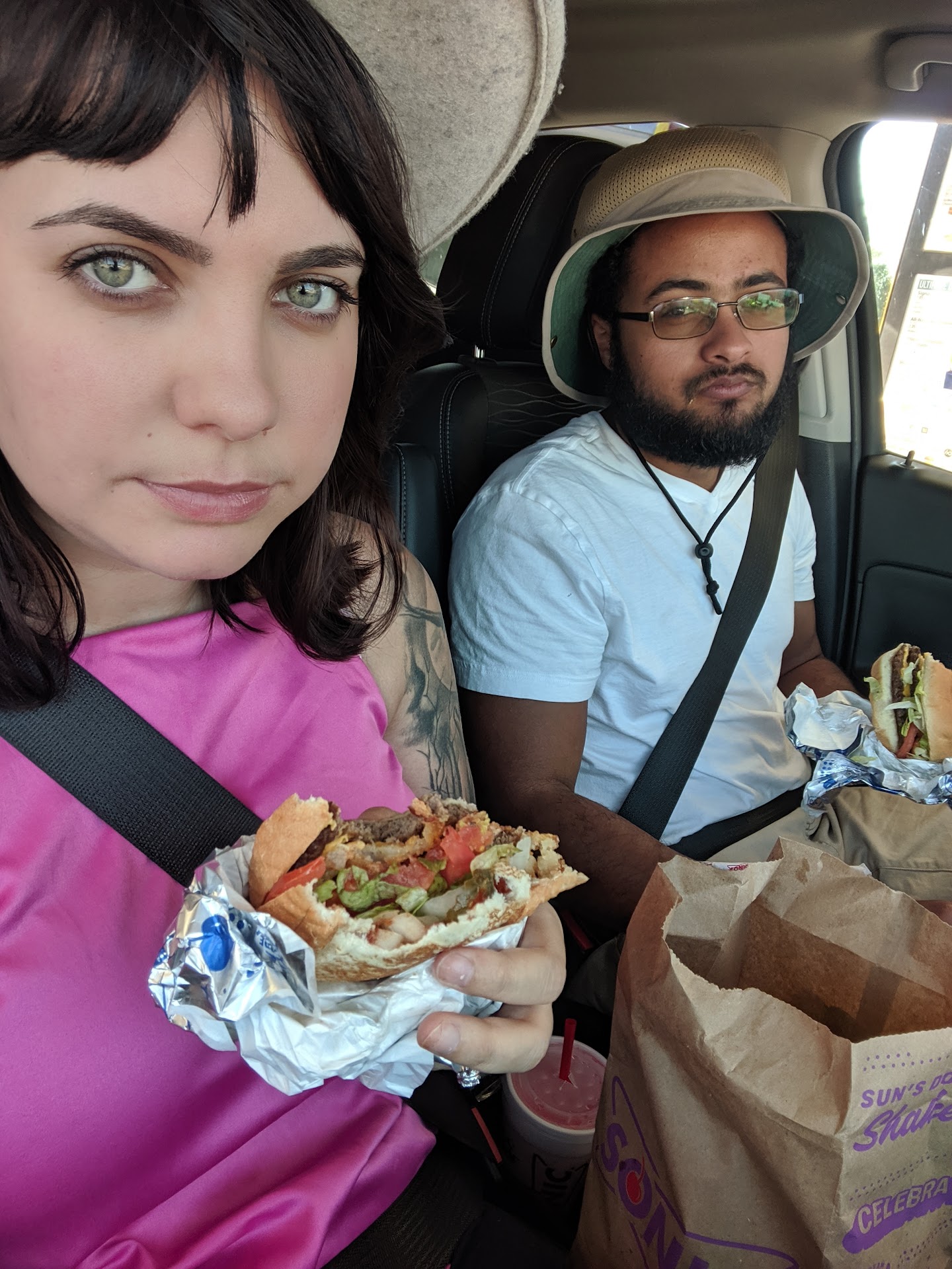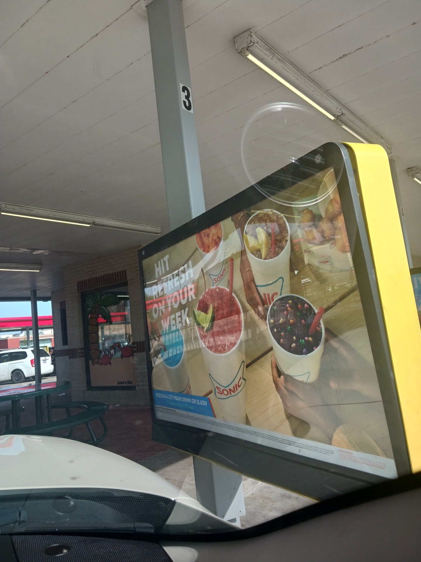 Read moreI waited at the drive thru intercom for 5 minutes without being serviced, so I pulled around to the window and waited an additional 2 minutes for someone to come to the window. I was informed the drive through intercom was not working. I told her I was picking up a mobile order, which I was told the Powerade slush was unavailable and I had to choose something else. I also ordered 2 corn dogs that I waited about 10 minutes for. While waiting for my food, I noticed cars lining up behind me, but no attempts from the 2 female workers to render service. 4 males, all in sonic shirts, walked into the restaurants kitchen after being in the parking lot smoking weed (it was a very notable smell and they were only feet away from my car). I was told the wait would be 2 more minutes because my corn dogs were being made fresh almost immediately after their return. Once I received my food, I noticed one was burnt on the outside and uncooked on the inside. The other corn dog was split in half down the middle, so the inside was burnt as well as the outside. I spent about 20 minutes at this sonic for 1 slush and 2 corn dogs. Another customer who had been waiting behind me the entire time still hadn’t ordered. He eventually left as I was getting my food along with 2 other cars behind him. Also, I didn’t receive a copy of my receipt and they were out of condiments. Terrible,...