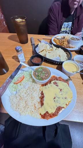 The first thing I asked the waitress was, “What are your vegetarian options?” She gave me the standard salad answer. When I asked if they had cheese chile I relleno she said yes. So I ordered that with chile con queso and ranchero sauce. Hubby ordered the chili cheese enchiladas. He got his chili and cheddar cheese. He was expecting chili con queso but he said it was still good. Mynorder came with the correct cheese and tachera sauces on top. Unfortunately, it was full of ground beef instead of cheese. So I had to send it back. When I got it back the next time it was a cheese chile Riano, but unfortunately had chili cheese on it instead of ranchero sauce like had been correctly done the first time. Had to send it back again, reminding her I was vegetarian and did not want any meat on my food. So back it went. I heard her tell the cooks again in Spanish that I did not want any meat, that I was vegetarian (remember, I speak Spanish). When I got my dish the third time the only sauce on the Chile relleno was ranchero sauce. And she brought me a side I chili con carne. I asked her why she brought me meat? Turns out that in this Mexican restaurant, chile con queso equals chili con carne. I asked how the queso part was ignored. I got a deer in the headlight look. I asked what did they call the cheese sauce. She said they call it dip. 🤦🏼♀️ When I got a side of the dip and put it on my chile relleno it all was good. The rice is good if you mix it with the sauces for additional flavor. The charro beans were good once you added salt. Not sure I’d go back. Too much work. And no, I didn’t get any discount for having to send my plate back twice to...