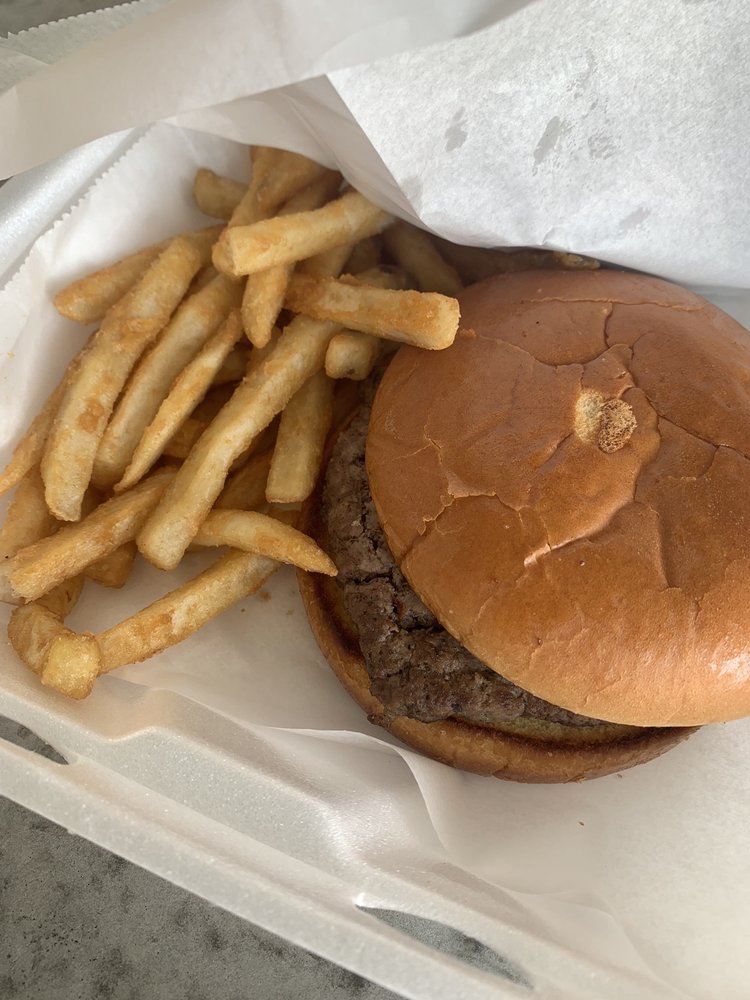 Read moreCame here earlier this week for a quick lunch. This little hole-in-the-wall was quite popular for lunch, even later in the afternoon on a weekday. They boast both an indoor and outdoor ordering station. While known for their burgers, they also had a sort of hot bar with southern cooking (chicken livers, southern veggies, etc). You can also get milkshakes and ice cream for dessert.