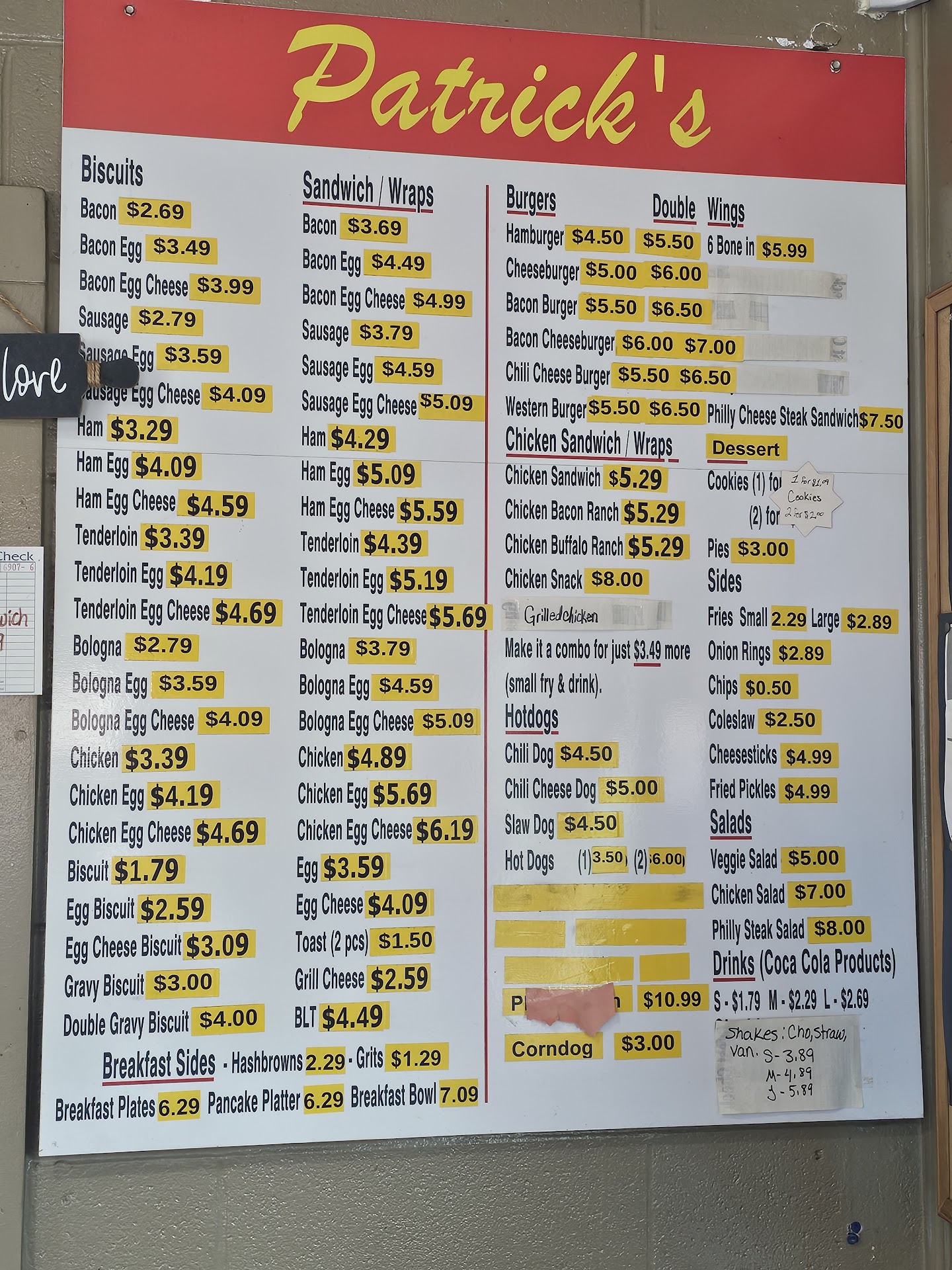Ā Ā Ā Read moreOne of the greatest spots around. I was working in Guntersville, I'm from Huntsville, and a guy told me to try Patricks. I went and got a bacon cheeseburger(with CRISPY BACON!!!!@) and onion rings and was blown away. I don't eat a lot of burgers but if I lived close to there i would eat a lot more. From that day I ate there every day I was in Guntersville for the duration of that job. I even had my wife drive out to meet me there and try it. The new owners are awesome and doing a fantastic job. I really can't recommend this place enough. It's a must eat if you are ever...