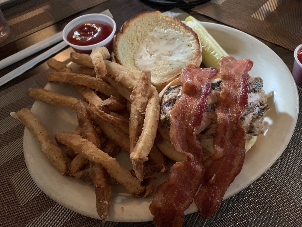 The only good thing I can say about the Julian’s Spicy Salmon was that it must be very healthy, because it sure lacked taste. It was watery and disappointing. So it went mostly untouched. When refilling my iced tea, I asked for more ice than tea. I think our waitress heard was “bla bla bla”, and my refill was warm tea. When we complained about the cold French fries, the waitress told us that she doesn't cook it… she just brings it out, but she’ll tell the kitchen. When we left, we didn’t see anyone talking to the kitchen. I left the waitress a generous tip anyway (~ 15%)… its not her fault… it’s the owners.