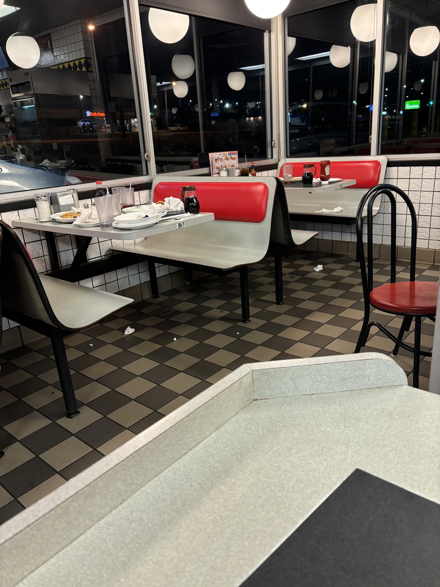 THE WORST EXPERIENCE OF MY LIFE! This was absolutely MIND BLOWING. I went in with my friend at around 1 am. When I walked in, there was 2 waitresses & 2 cooks. I was NEVER greeted or acknowledged at all. EVERY. SINGLE. Table in the restaurant was full of plates and food… which would be fine but I stood there and waited for 40 minutes and was never even acknowledged!! Mind you, there was only ONE COUPLE sitting down to eat. The rest of the tables were empty.. after 40 minutes of waiting and watching both the waitresses just stand around on their phones IGNORING ME, I finally said “excuse me, can somebody please clean off a table for us to sit down at?” They looked at me and laughed! And ignored me completely. Then, one of the waitresses started talking about me asking for a table to be cleaned to the couple that was sitting down, saying I could clean it myself! And I DID HAVE TO CLEAN OFF A TABLE MYSELF!!!! after I cleaned off the plates and food and wiped the table down, I sat down and waited to be served. Me and my friend sat there for 25 more minutes while both the waitresses completely ignored us and NEVER took our order or even spoke to us! I am absolutely APPALLED by this experience. Never in my life have I had such an insane and disgustingly rude customer service!!! The manager should be absolutely ashamed…. Also here are a few photos for reference… taken AFTER I waited 45 minutes and cleaned off my own...