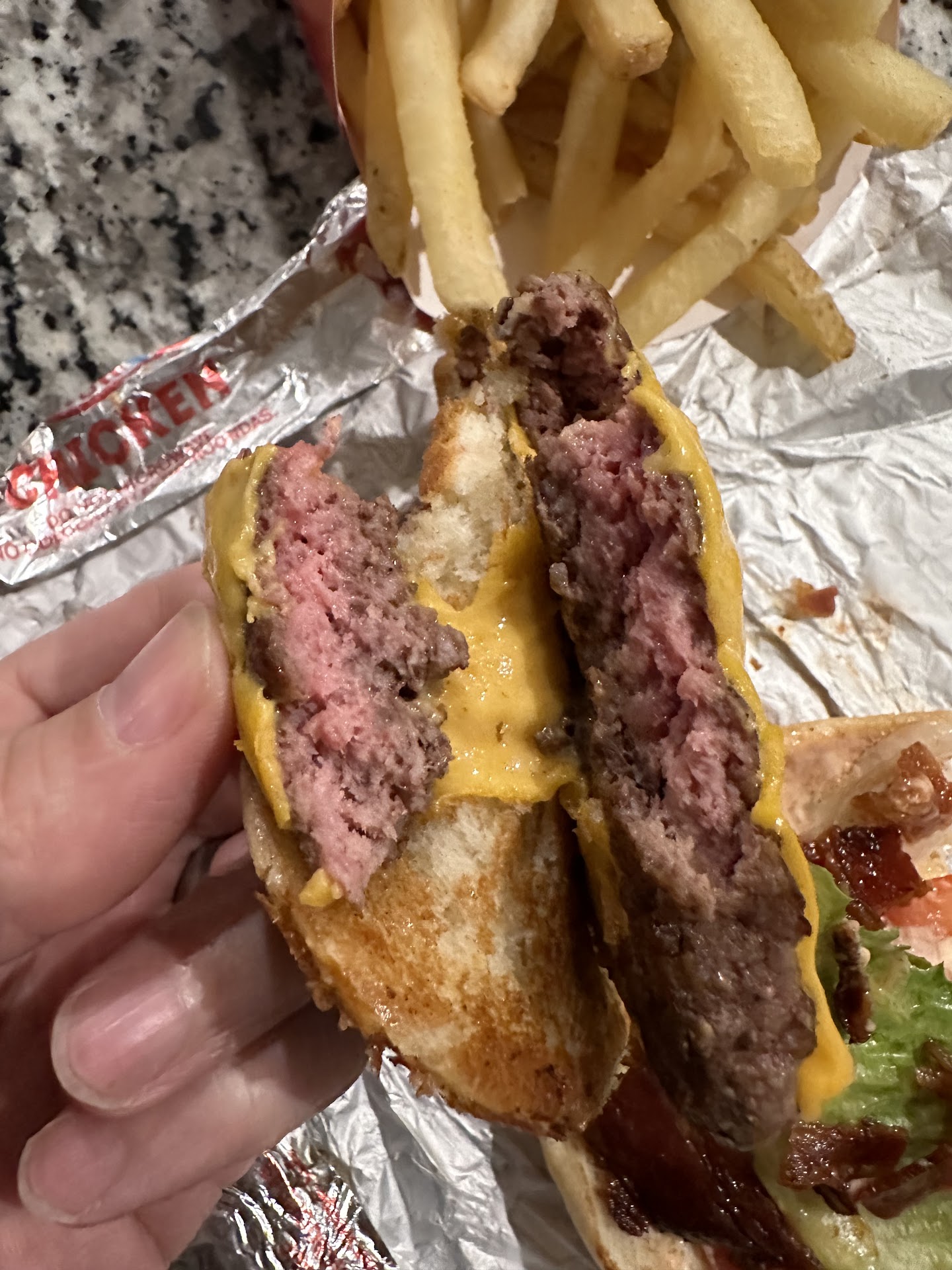 I’m not sure if there was an issue with the intercom or some other factor, but directing frustration at me seemed inappropriate. Neither time did she ask me to repeat myself. She just stopped at, “I can’t hear you.” I finished ordering, confirming my selections on the screen: Jr. Bacon Cheeseburger, Fries, Nuggets w/Honey Mustard, and a Dr. Pepper.
