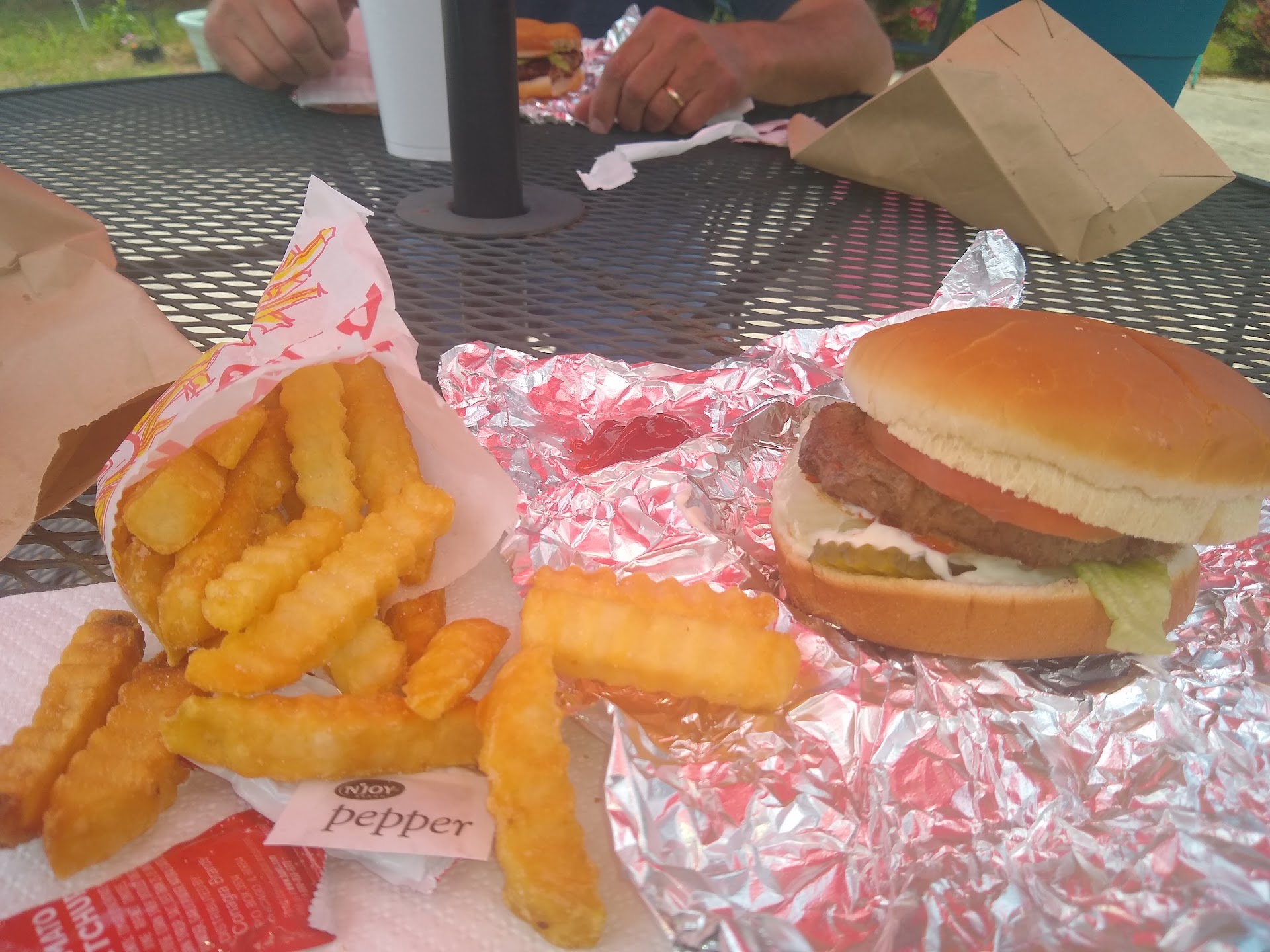 Junkyard Burgers never heard of it until I got with my new boss Ricky and to be honest it's very tasty very tasteful very polite people that do work there they also call him slug Burgers why they call them a slug Burgers I have no idea but you know old people set in their ways can't really call him old they're just set in their ways the french fries are great the burgers are wonderful the drinks are always cold and it's a wonderful little place looks like a barn but you know what looks not everything they might surprise you dried out I did and my taste buds are running wild...