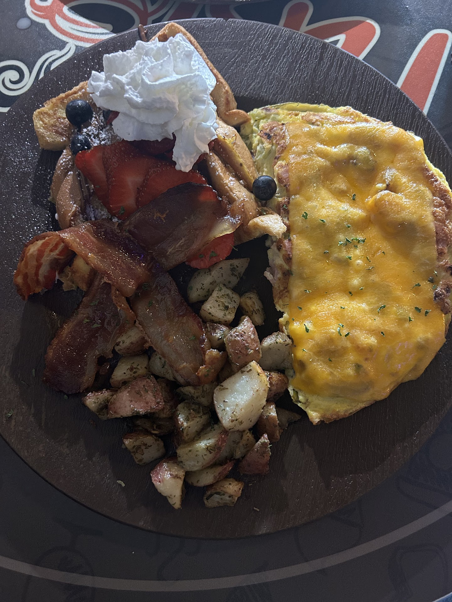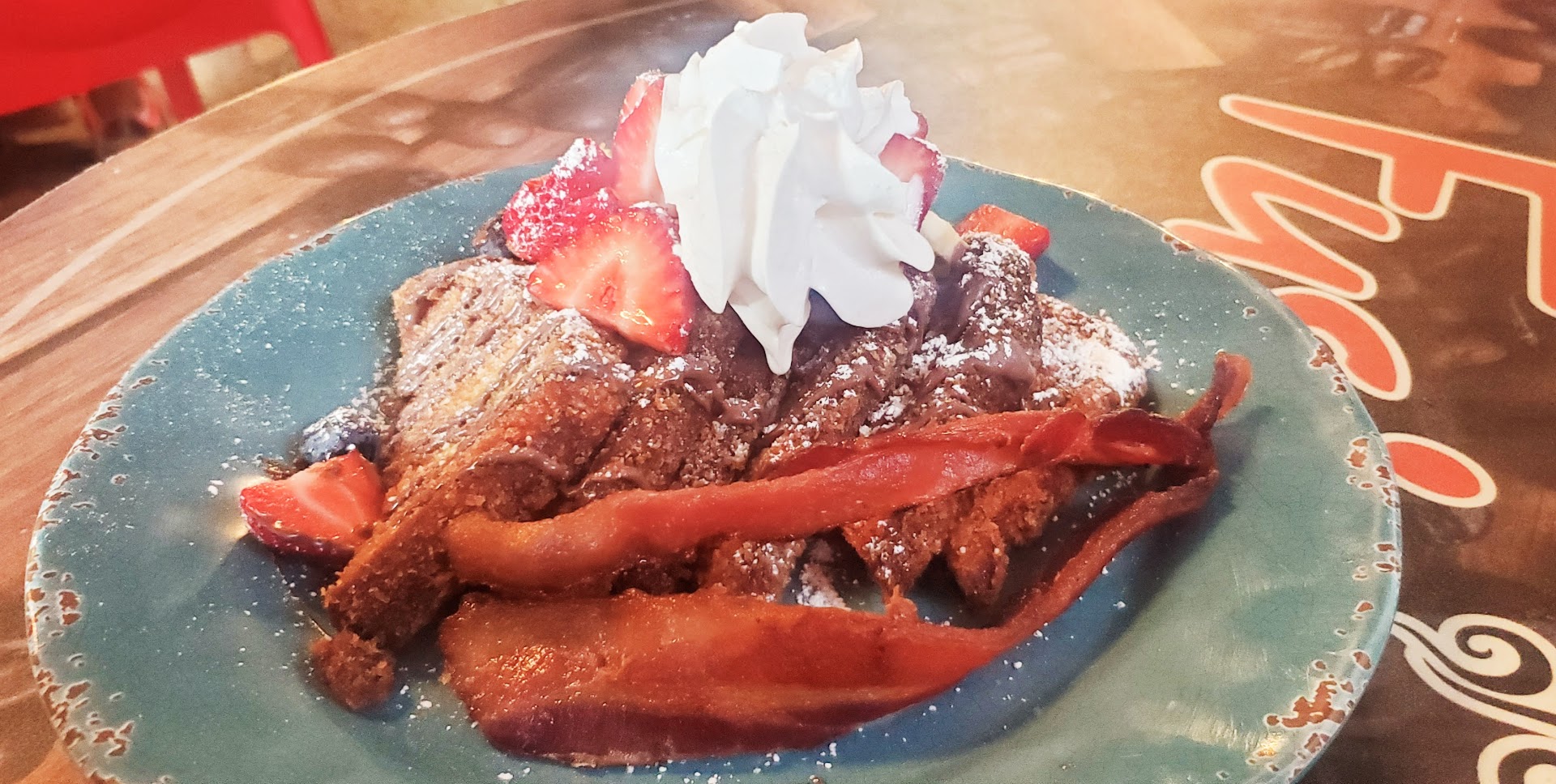 I cannot rave enough about this place. We ordered the fried cheese and the chorizo. The cheese came with a delicious guava sauce that I could have eaten forever. The chorizo was almost a meal in itself, the flavors complementing both apps. We had the pumpkin pancakes as our main dish (all dishes are always available, so if you want a brunch or late breakfast THIS is the place for you). The pancakes were huge but surprisingly fluffy for their size. The three pancakes are enough for 2 to share, but I wouldn't share such delicious food with anyone, I hoarded them completely! They come with cream and butter and are sprinkled with cinnamon, and that brings out the pumpkin flavor across perfectly.