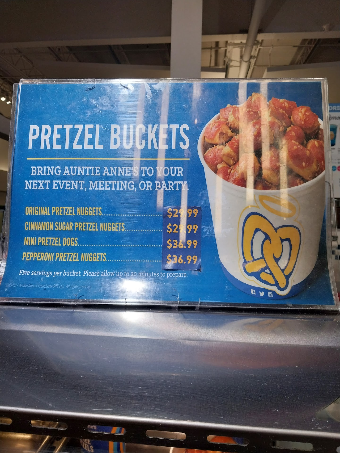 Read moreThis food is amazing and a great snack! The prices are decent and the workers are positive. I recommend this place to anyone that is into good food/snacks. They workers are so polite I have never seen such great customer service in my life at any restaurants compared to this Pretzels Place. They cashier he suggested his name was "Harry" was an amazing guy. He was offering wonderful deals and gave me sample of Birthday Cake Nuggets to me and my wife, made me to buy the new popular came product. Auntie Anne’s Birthday Cake Pretzel Nuggets are definitely a mall food – new but still really familiar, cute but institutional, with a tinge of missed...