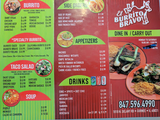 Read moreOmg just awful funny thing one of my co-workers and myself were on lunch that day and looking for somewhere to go eat we found this Mexican restaurant called El burrito Bravo and my coworker ordered some steak the tacos themselves came with lettuce cilantro onions and I believe tomato so that was Overkill steak tacos for the most part have cilantro and onions and that's it I myself ordered a burrito steak burrito and it was so small and the flour tortilla smelled funny like I said it was about 6 in Long for a burrito that's too small and it was poorly made absolutely no flavor what a waste of time and money do not go there will not recommend this restaurant to no one I would have gave it zero Stars if it...