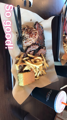 Read moreAmazing experience really! The bbq was very good and the service was great also. The entire restaurant’s decor pays homage to the armed services and is by far one of the most patriotic restaurants I’ve been to. It kinda reminded me of my trips through Texas which is a very good thing, because I love Texas. My friend and I each ordered the 3 meat sampler which for the most part was very good. The baby back ribs were a bit on the dry side but the other meats and sauces more than made up for it. The cornbread was my least favorite item of the meal I had as it was super dry and tasteless. I also ordered a side of fries with my meal which were very good but not as great as the “Freedom Fries,” that Laurie the manager surprised my friend and I with. My friend didn’t care much for the chit chat and the attention Laurie gave us, I on the other hand loved every minute of it because it shows she cares. She is a warm and inviting manager and they did well in hiring her. One downside my friend and I noticed was the customer atmosphere as soon as we walked in, it was all Caucasian customers and we got stares and a weird vibe from the customers,not sure if it’s because we’re brown but I immediately chose to ignore it. Another hiccup we noticed was as customers left they were offered to leave their trays on the table along with their trash and someone would get it for them, we were not offered that but again I chose to overlook it. Overall it was a pretty...