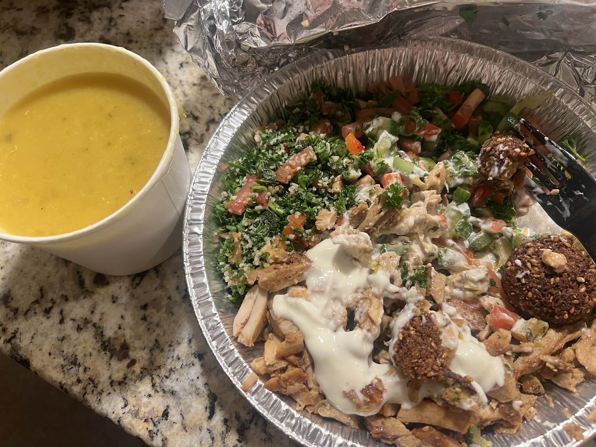 Read moreUm where do I begin. I was across the street at Quest Diagnostics (a couple of times) had to fast. This time was starving and decided to try. I wanted a little bit of everything so got the combo meal! There was SO MUCH MEAT and everything just piled on. Omg so good. Chicken breast, lamb burger, beef etc. Saffron (?) rice, 3 different kinds of salads, lentil soup, two warm and fluffy pita breads, 3 different sauces , one tasted like yogurt, one I think tahini, and the other a hot and spicy salsa-like sauce. I also loved the canned and bottled juices. Opted for the mango juice with pulp. SO GOOD. in fact, I recently started eating meat, and this was a great introduction for me. My partner is vegetarian and I got him the vegetarian version of this combo, he said the food was amazing as well. The man working was very friendly and he gave me a sample of the falafel. There’s is very unique and tastes like it’s air fried! Crispy with sesame seeds! What can I say. Check out the pics I posted! Each meal was enough for 3 meals for each of us!!!! I posted on my Snapchat and several people asked me where I...