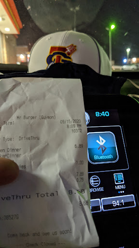 I normally get Mr. Burger for lunch and the service then is always top notch. One lady always remembered my name when I called in. Decided to get it for dinner tonight (February 12th, 2021) and the service was embarrassing. Called in a order at 6:08pm and was told it would be 15 minutes. I arrived at the drive-thru and paid at 6:25pm and was told to pull around to the other side. I thought that seemed odd since they normally have it done before the 15 minute mark. Could tell that the inside of the restaurant wasn’t busy at all and I only had one car in front of me and waited probably 5 minutes for them. Once I pulled up to the window I saw that there were several orders sitting up where the cooks set them once they’re done and One of the girls was working right in front of the orders. At 6:40 a girl finally brought a meal to the window and asked if I had a cheeseburger. I said no, I had a jalapeño chicken dinner and she went and grabbed one of the orders that was sitting there since 6:30, I’m sure had been sitting there much longer than that though.. I asked if it was cold since I know it’s been sitting up there a long time and she said the cooks didn’t tell her about it being done. In my opinion you shouldn’t have to be told about orders literally sitting in front of your face. She offered to make a new one but I had waited long enough. I finally left at 6:42 and got home about 2 minutes later and my curly fries were disgustingly soggy. Chicken was still alright. I think the owner needs to get help that’s more mature than just a few high schoolers in...